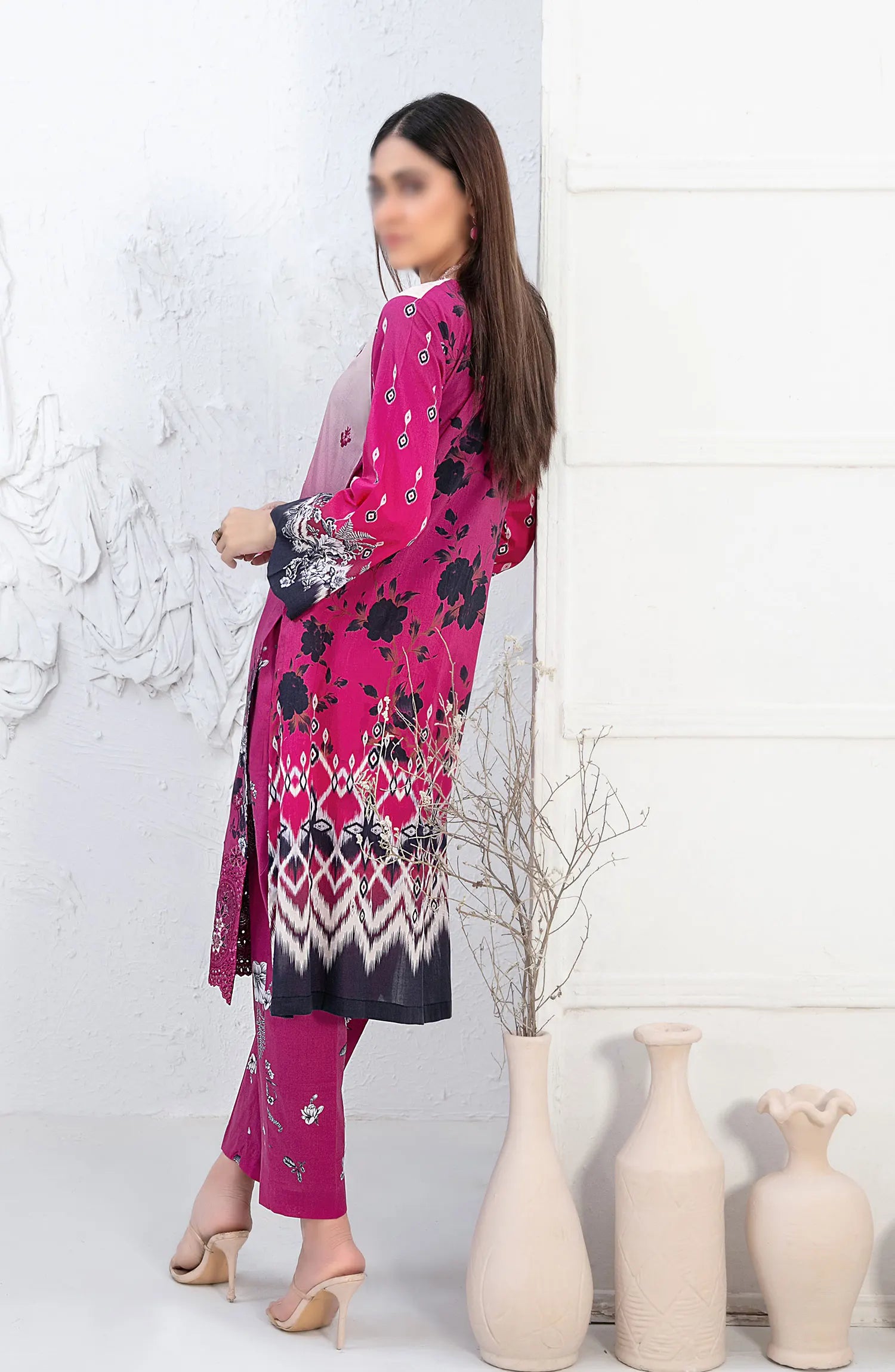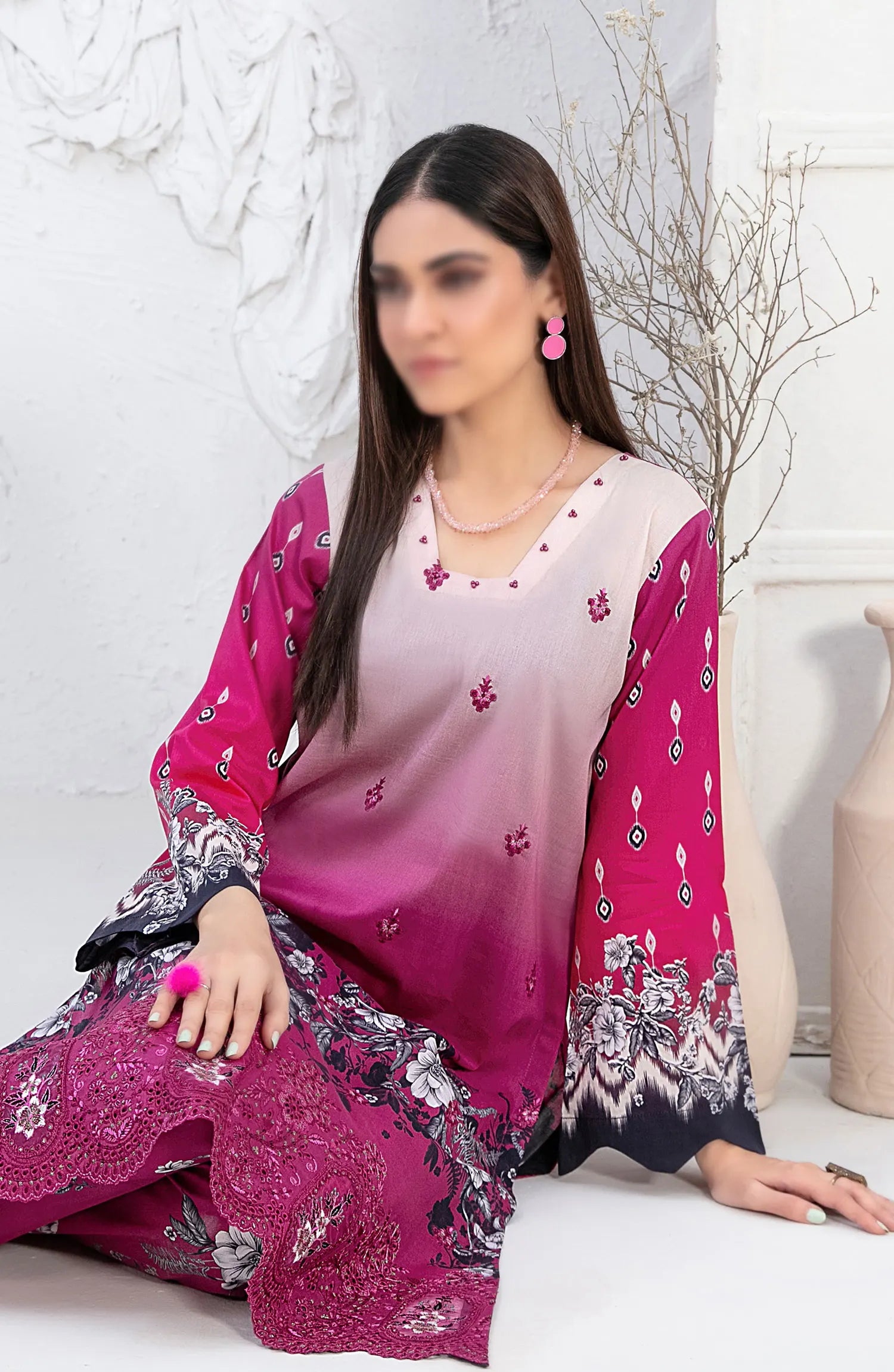 HZ Textile Digital Printed Linen Slub Unstitched 3 Piece Suit - LSD-305 - HZ25LNSL - Pink - Winter Collection