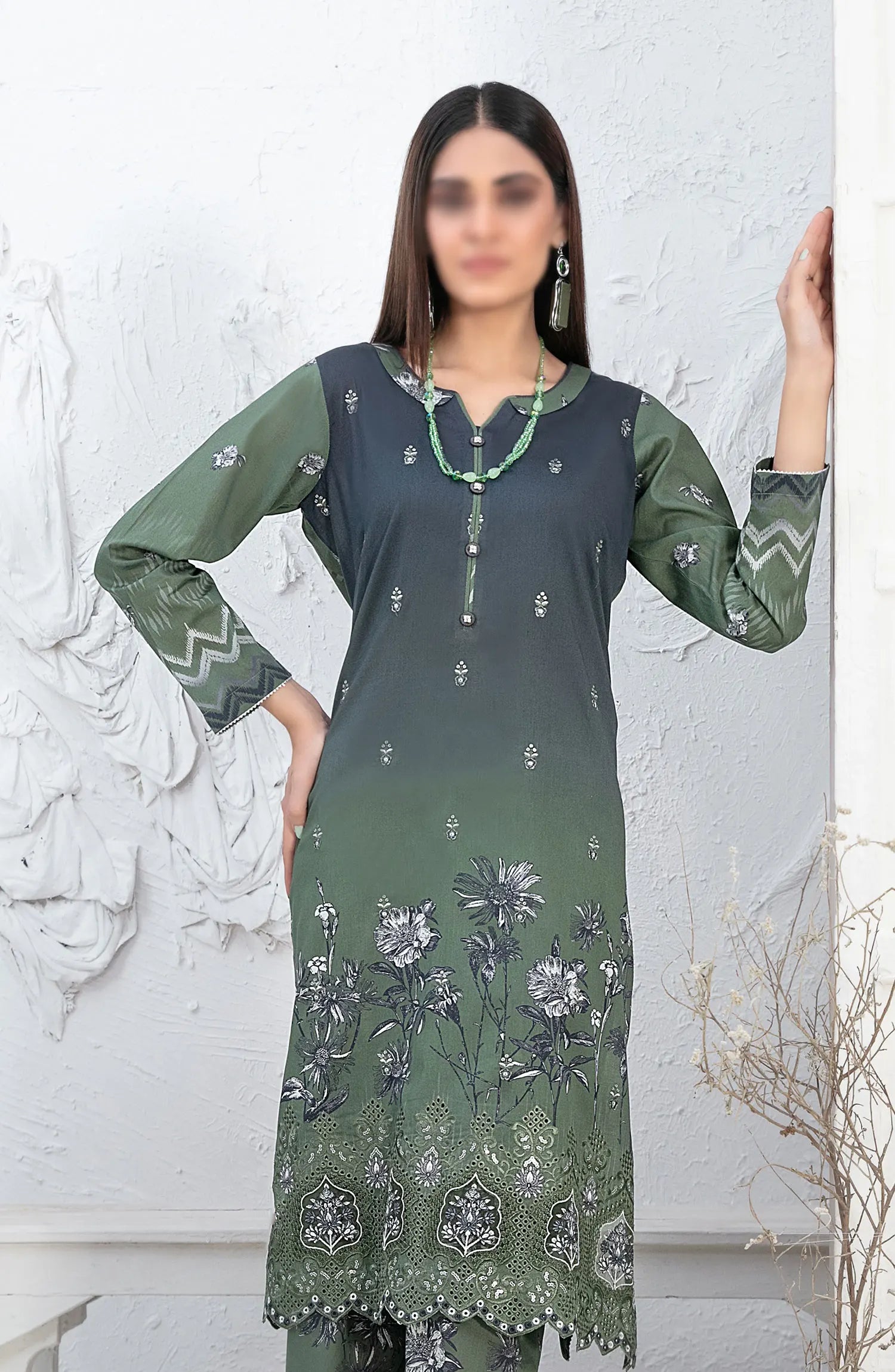 Mehrin - Laserkari Embroidered Digital Printed 2pcs Collection By Tawakkal Fabrics has been styled in the image for photography and illustrative purposes.