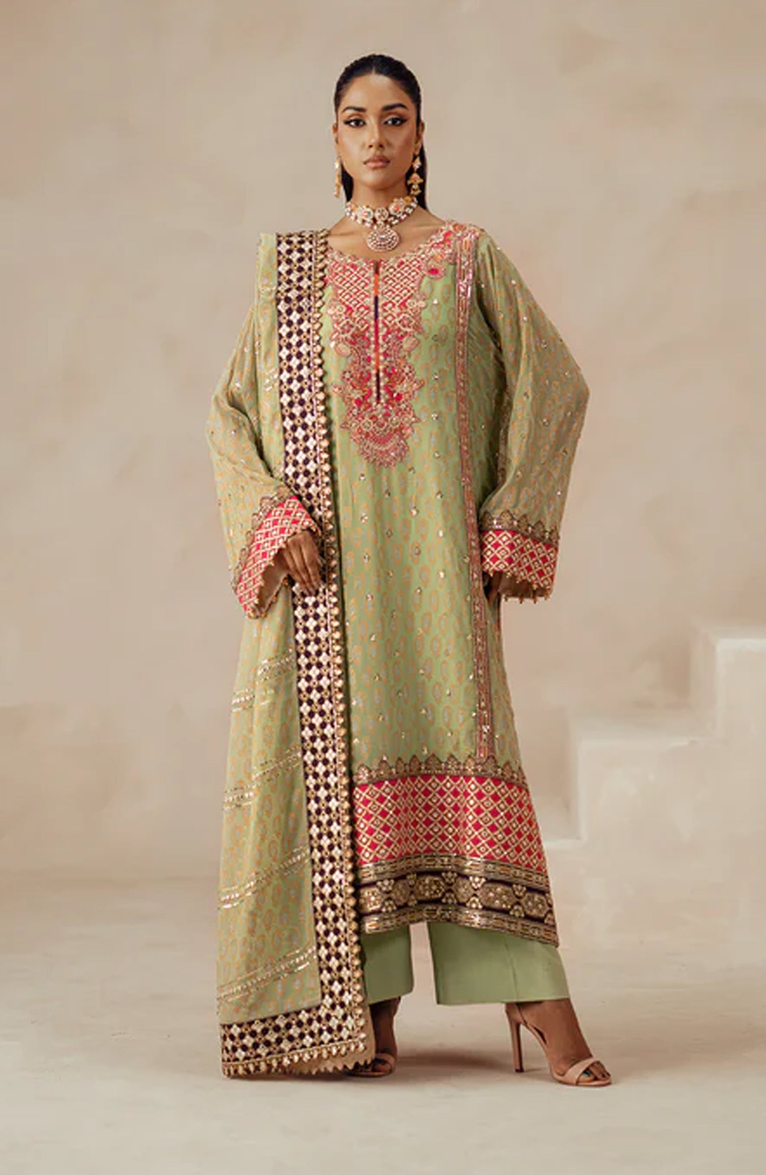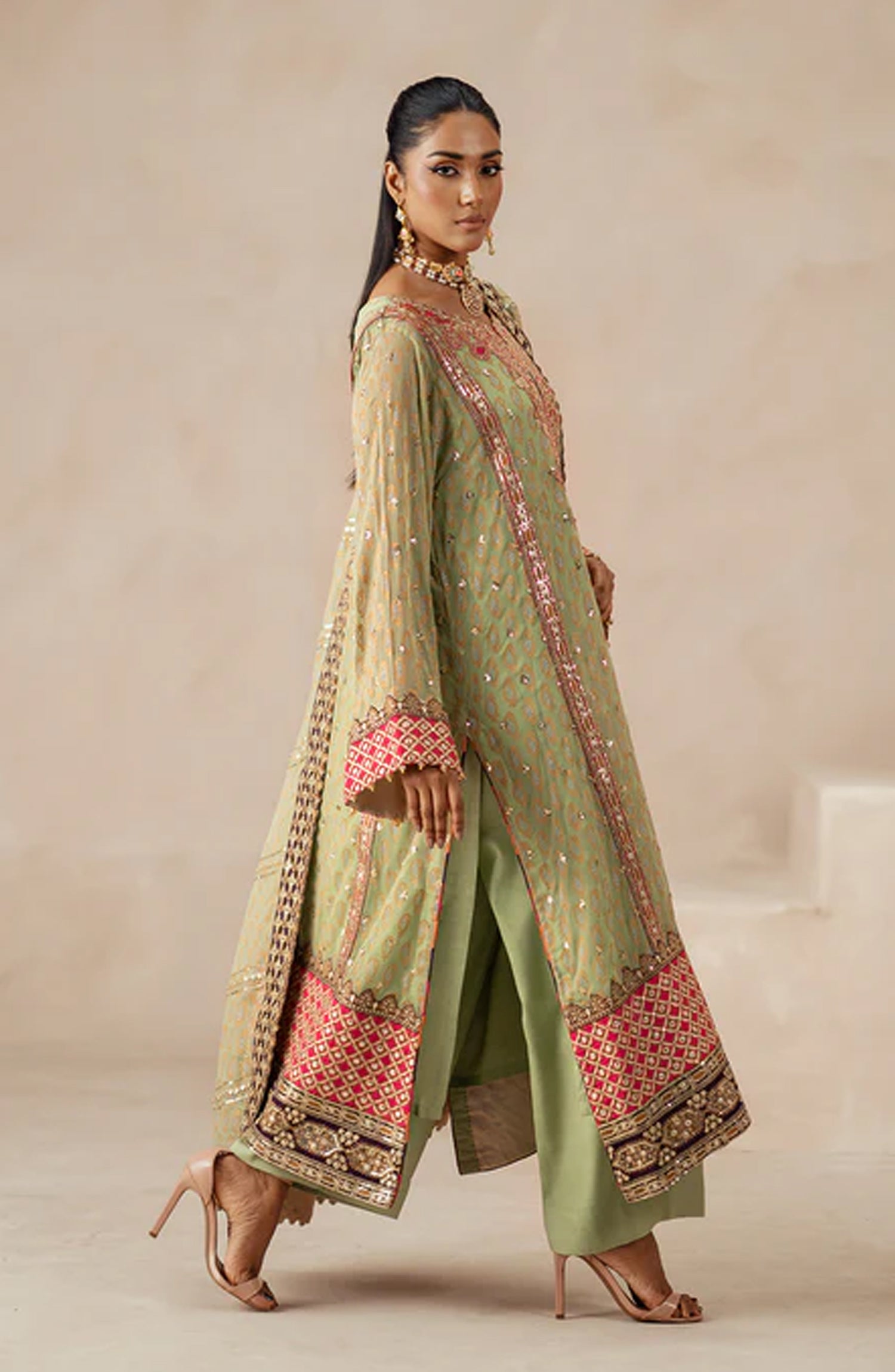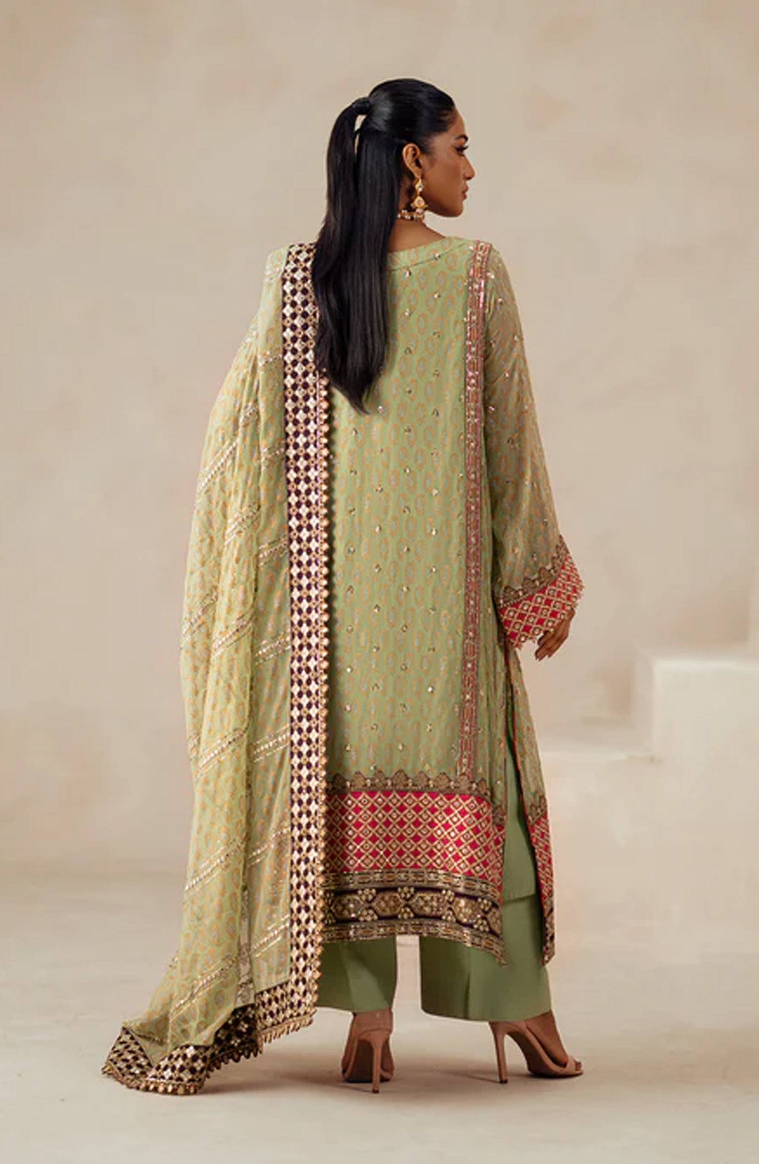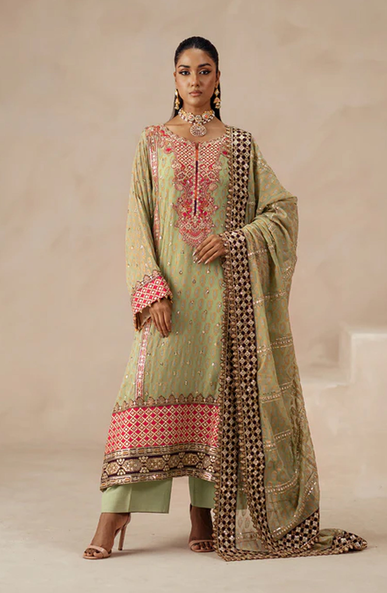 Embroidered Block Print Front, Back, Sleeves Spray (Chiffon) 3.20 Yards