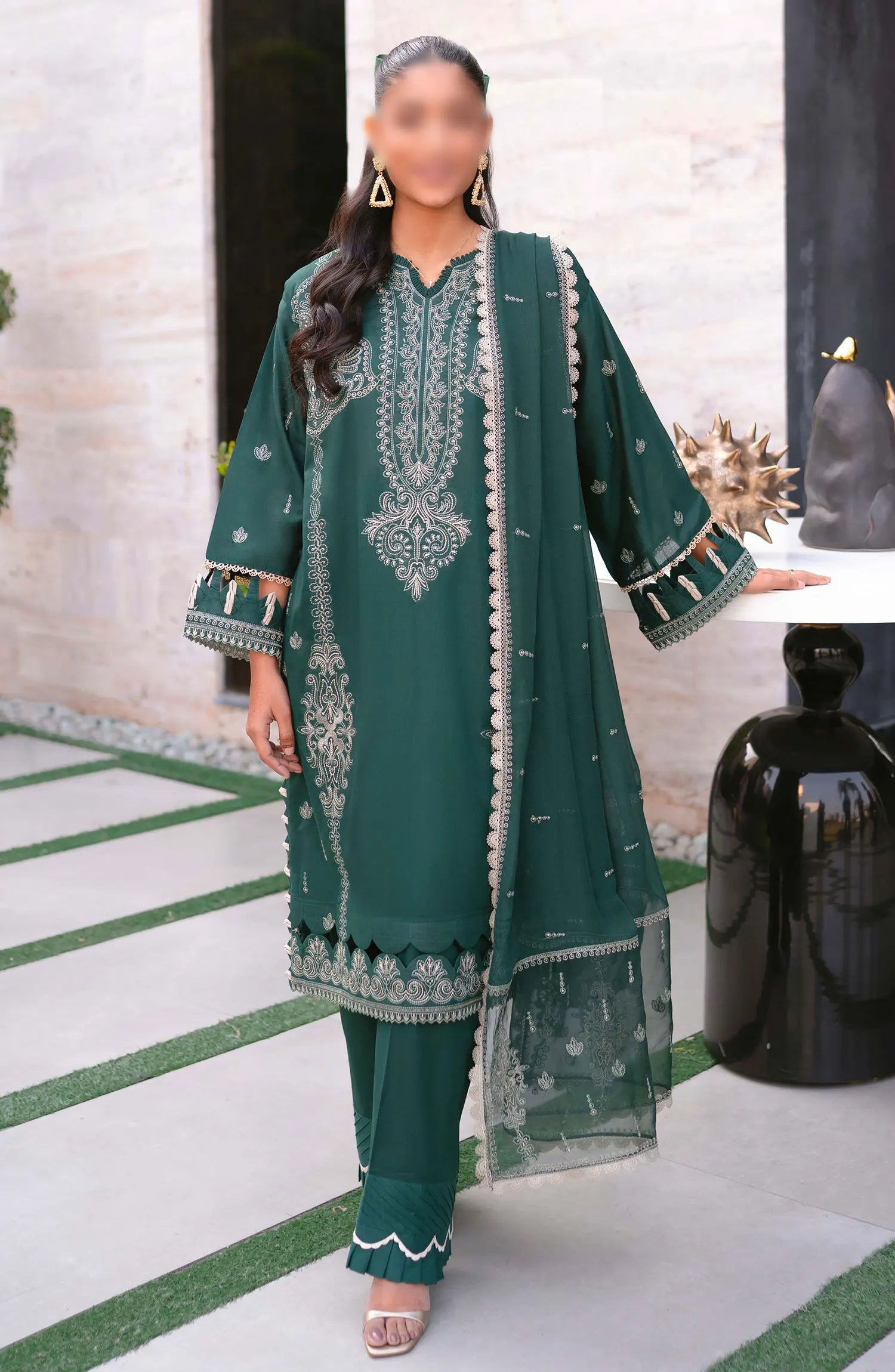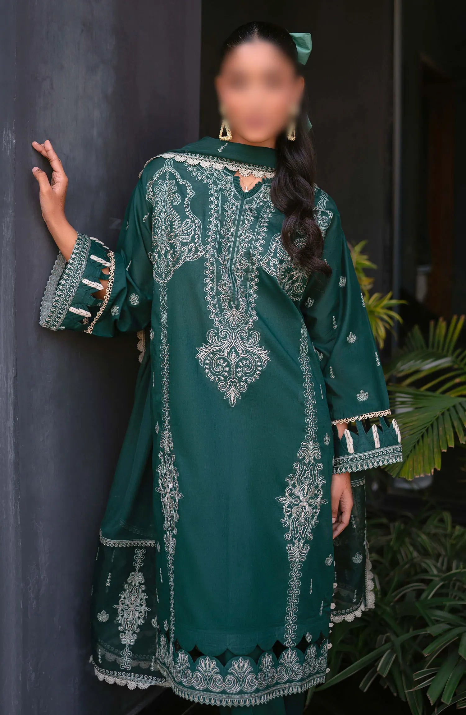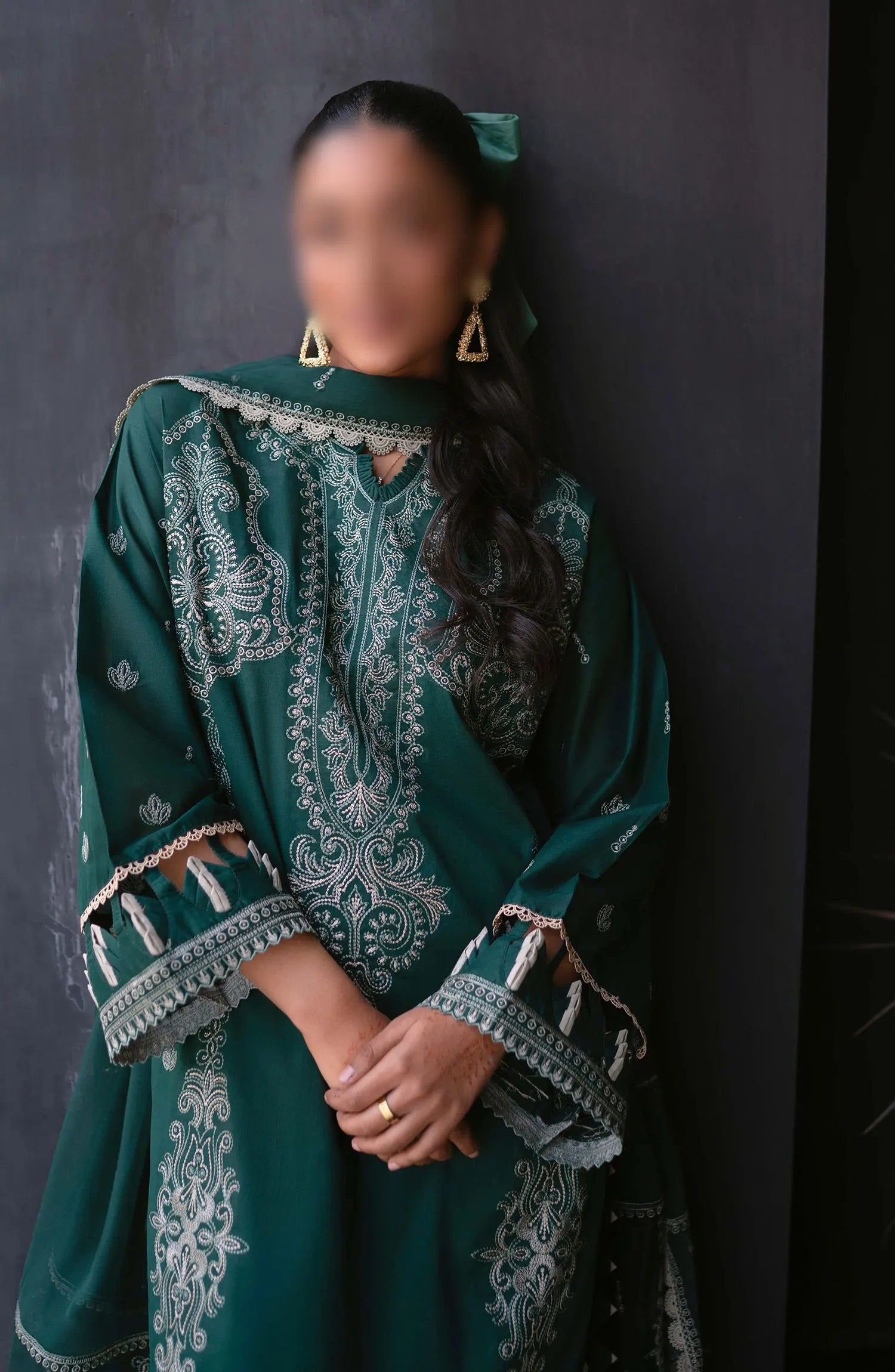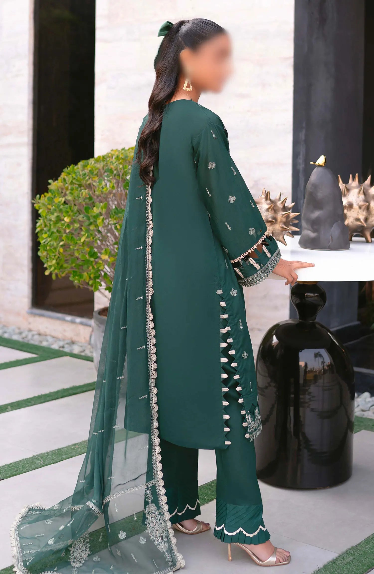 Rua by Casual Lite Embroidered Premium Linen Stitched 3 Piece Suit - D-04 Emerald Verse - CL25RU - Green - Winter Collection