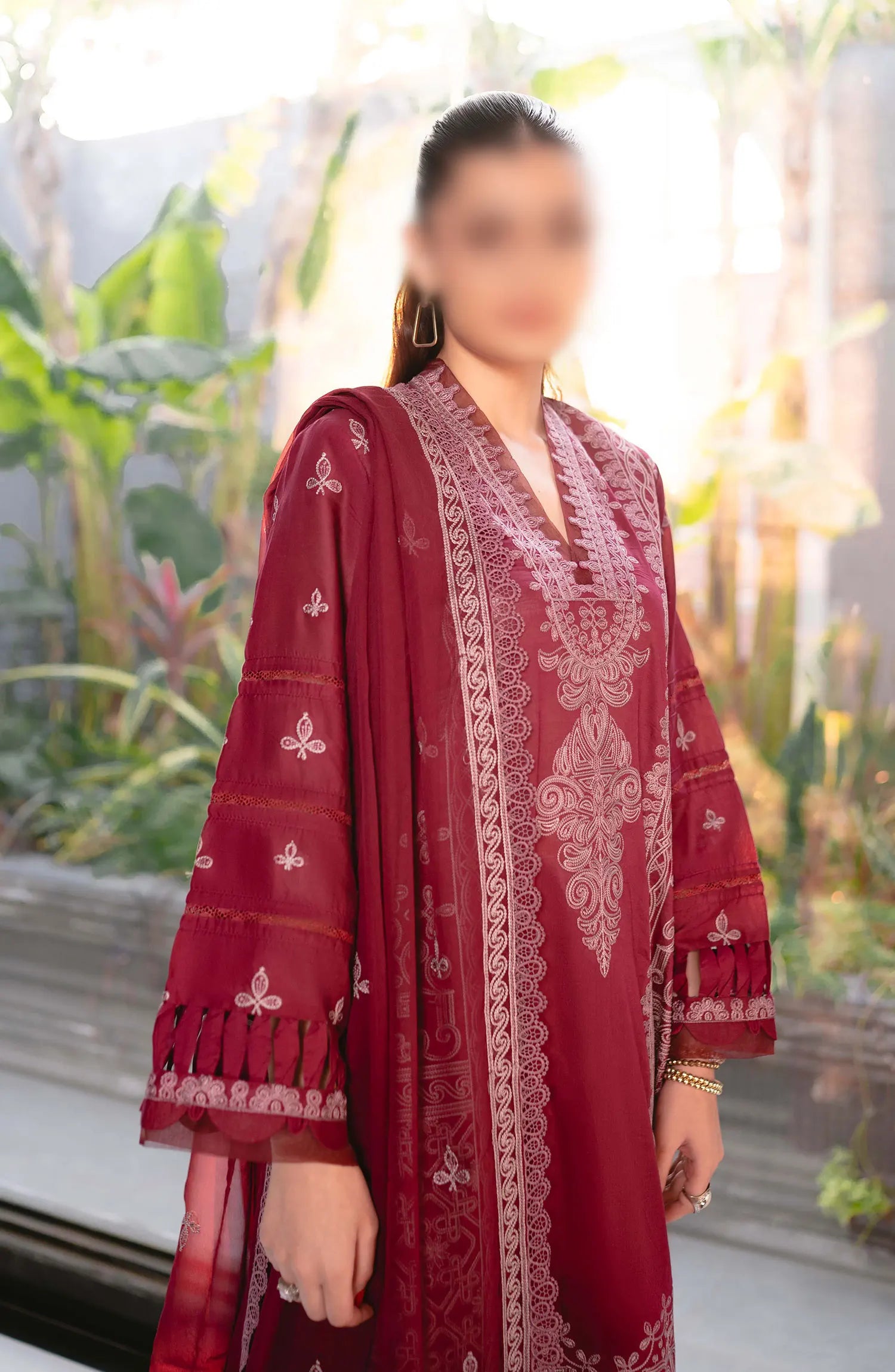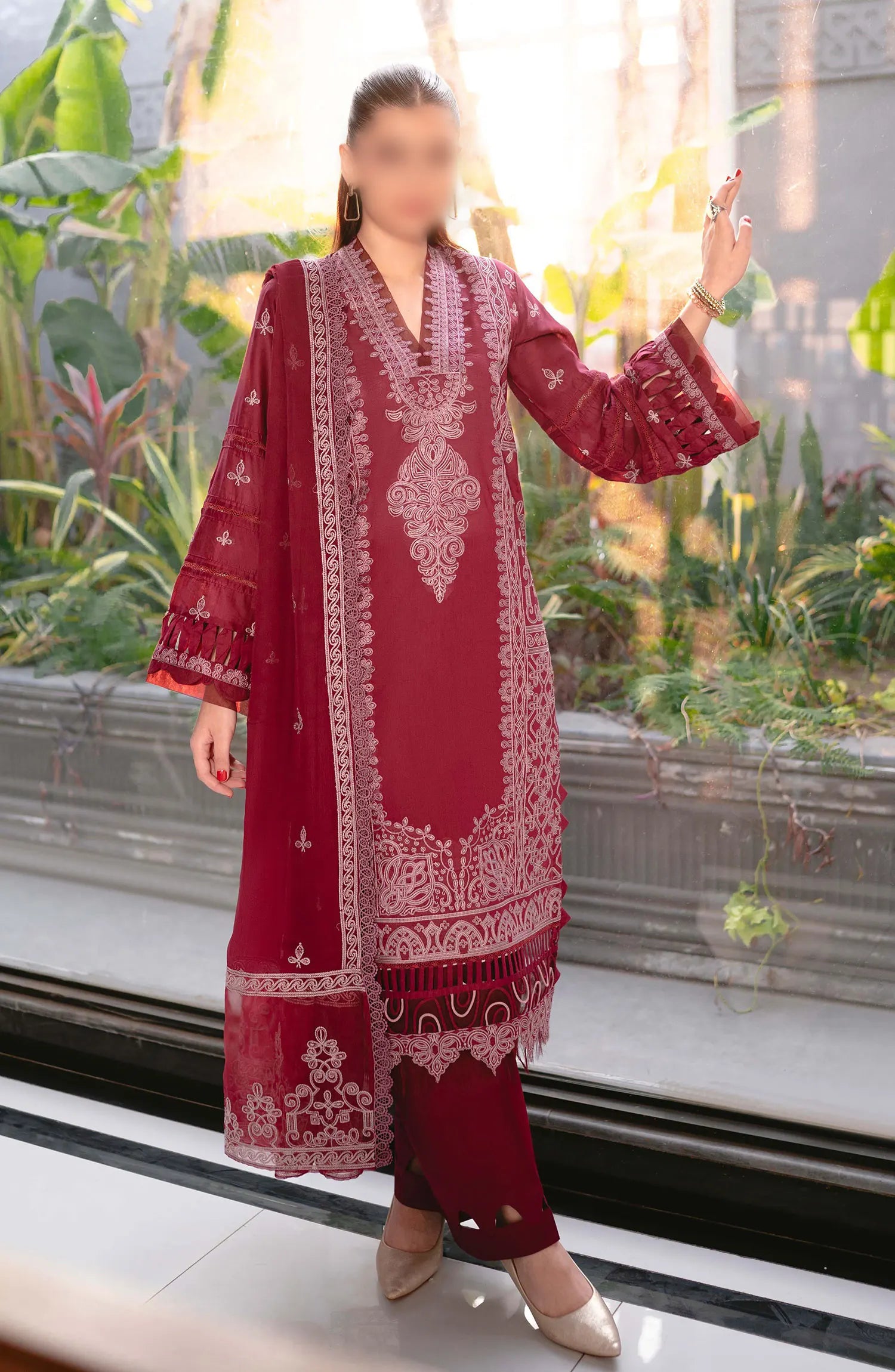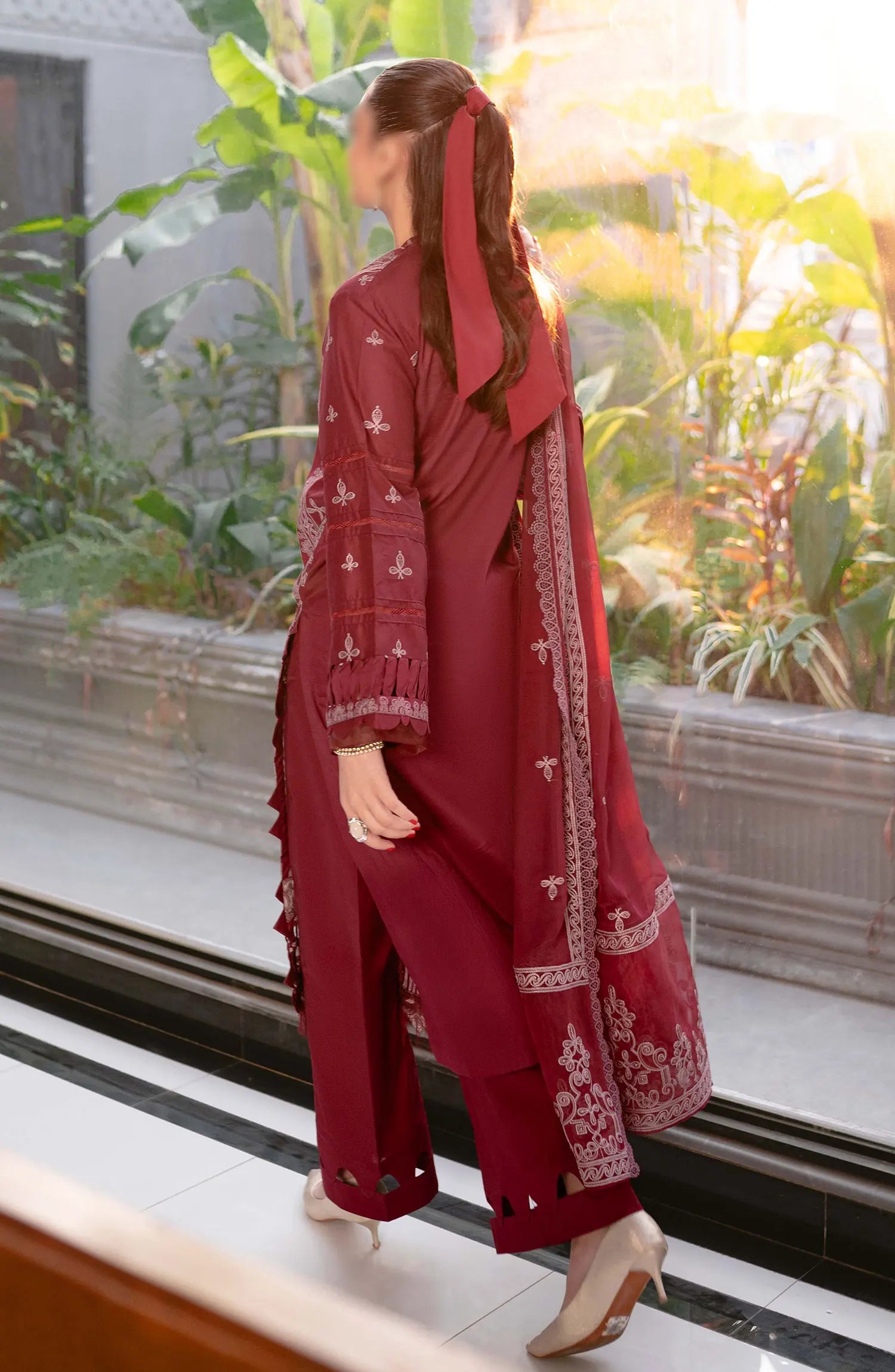 Rua by Casual Lite Embroidered Premium Linen Stitched 3 Piece Suit - D-02 Crimson Folklore - CL25RU - Red - Winter Collection
