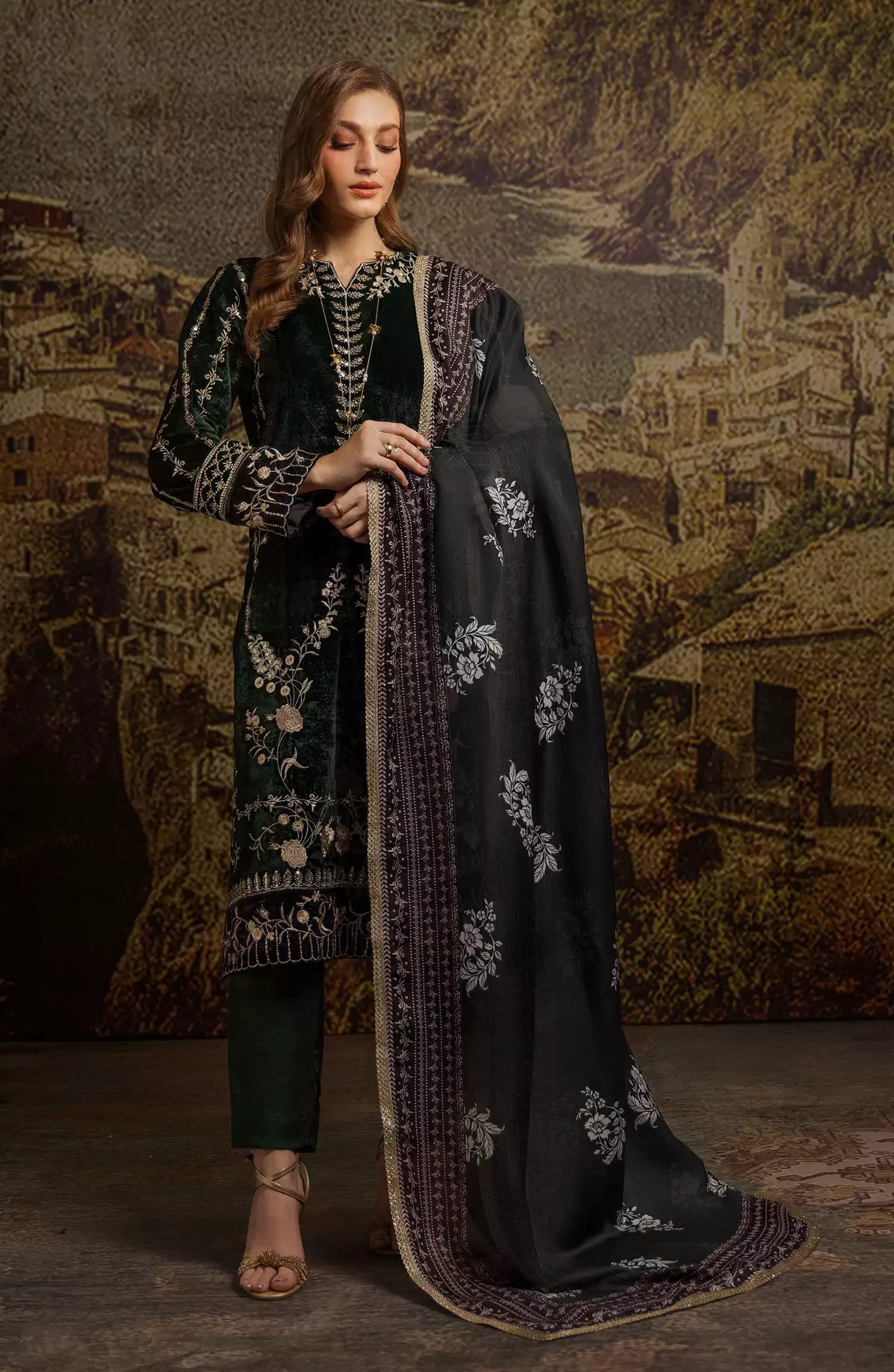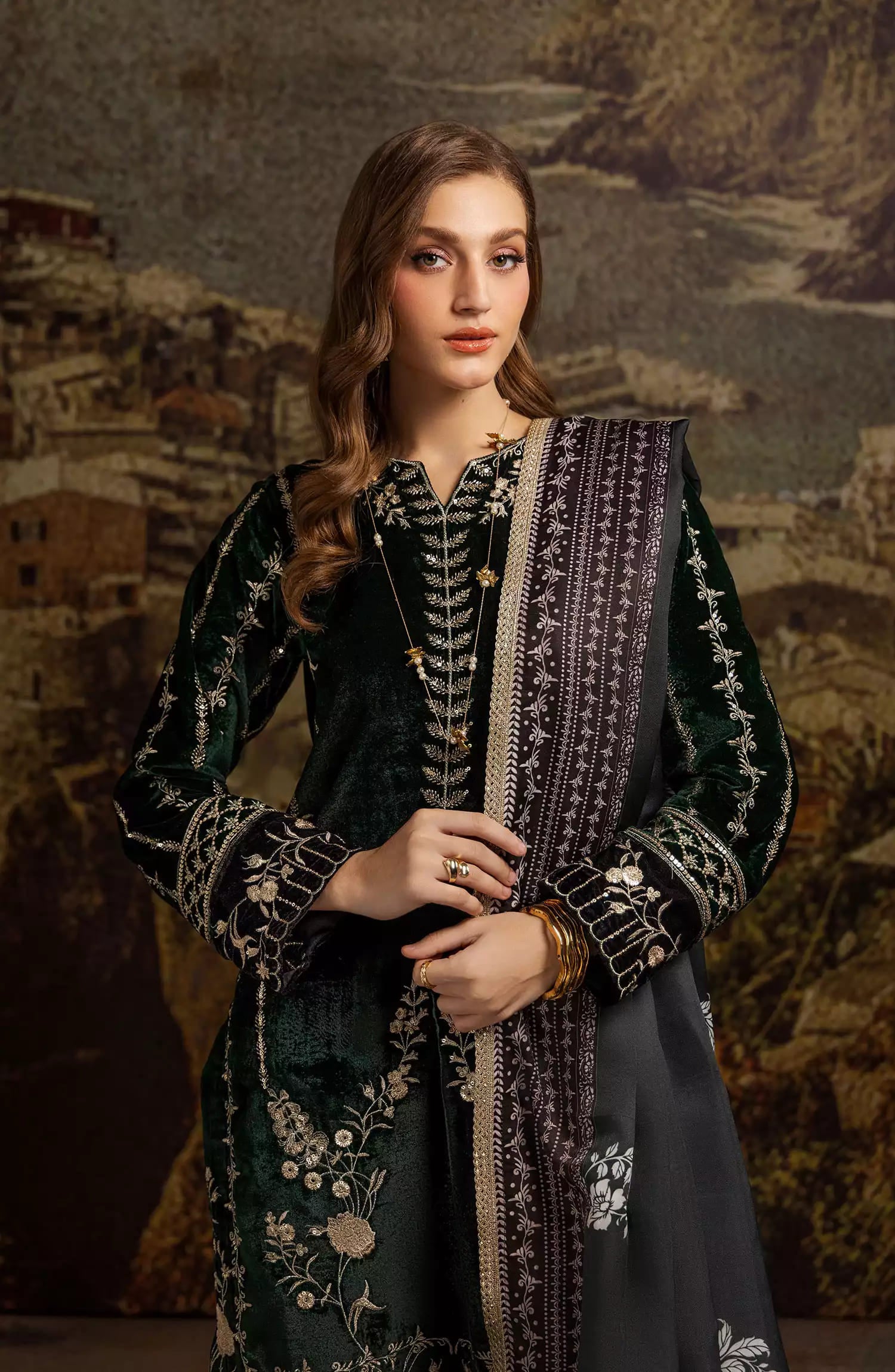 Merakish Luxury Velvet Collection 2024 has been styled in the image for photography and illustrative purposes.
