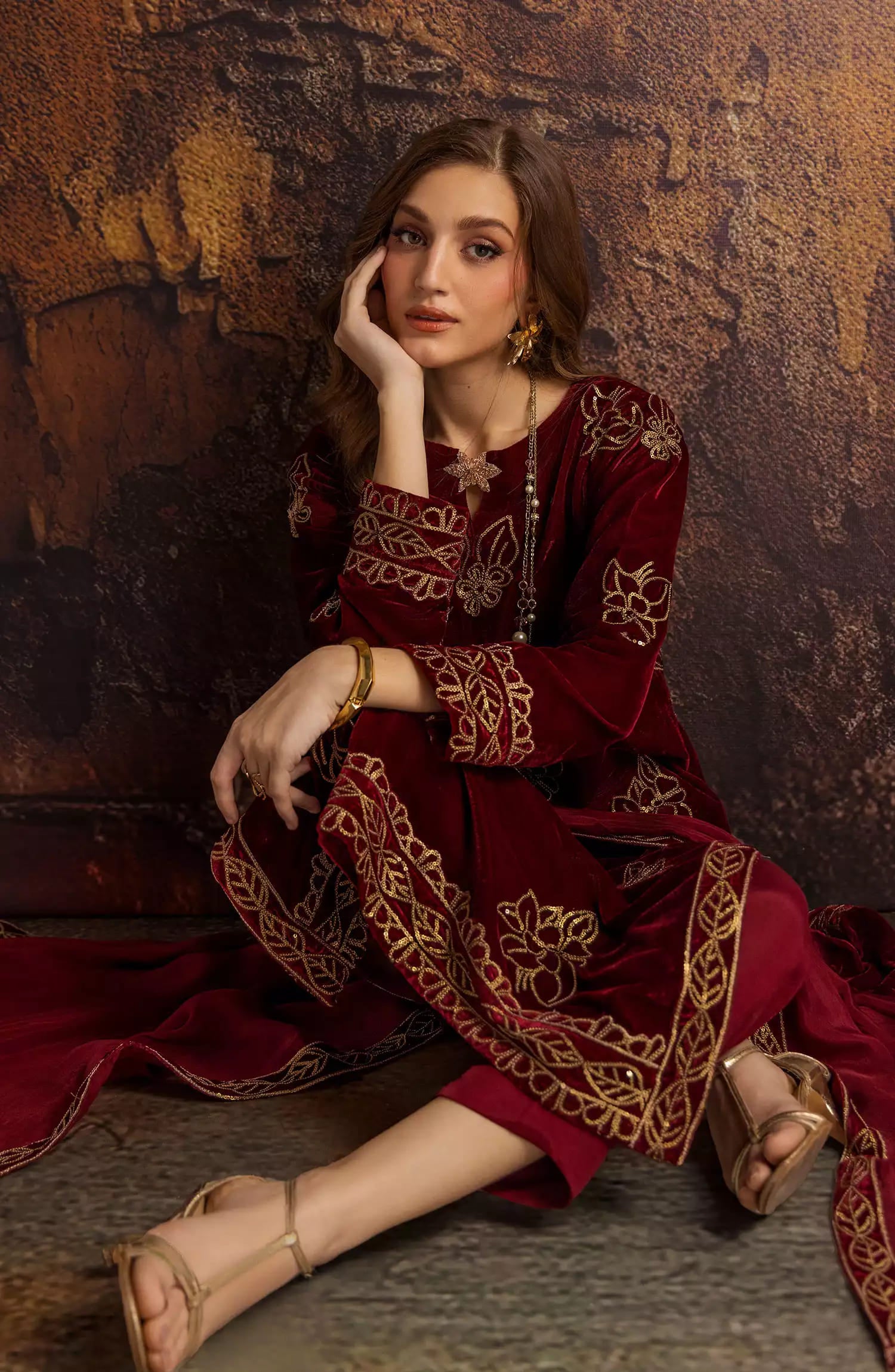 Merakish Luxury Velvet Collection 2024 has been styled in the image for photography and illustrative purposes.