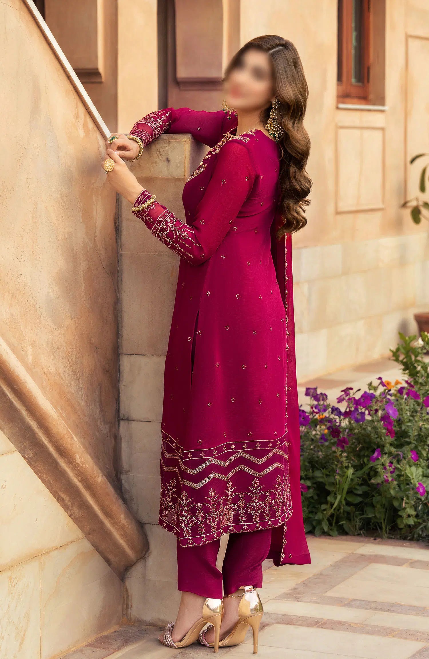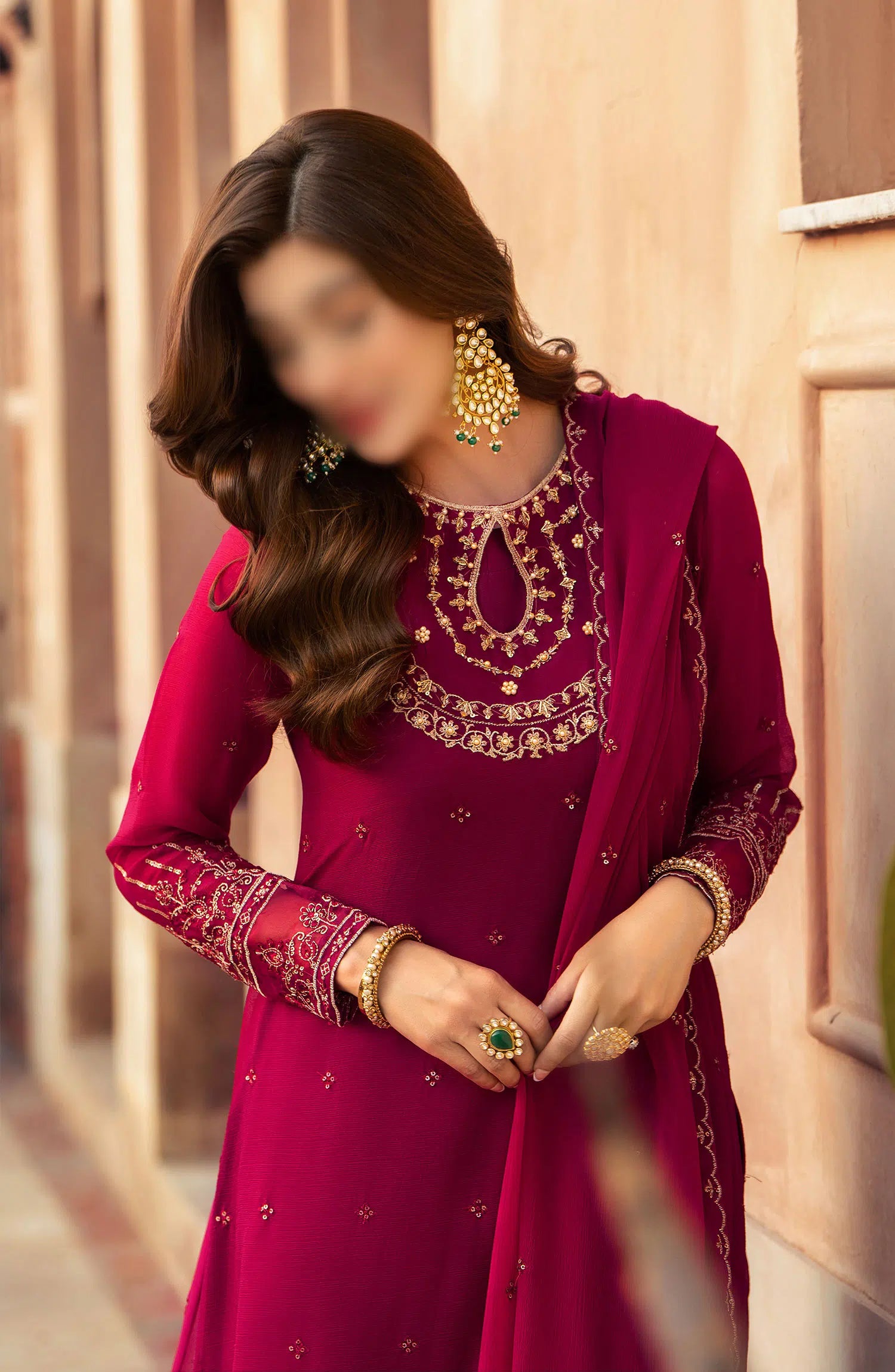 Merakish Unstitched Luxury Chiffon Formal Collection 2024 has been styled in the image for photography and illustrative purposes.