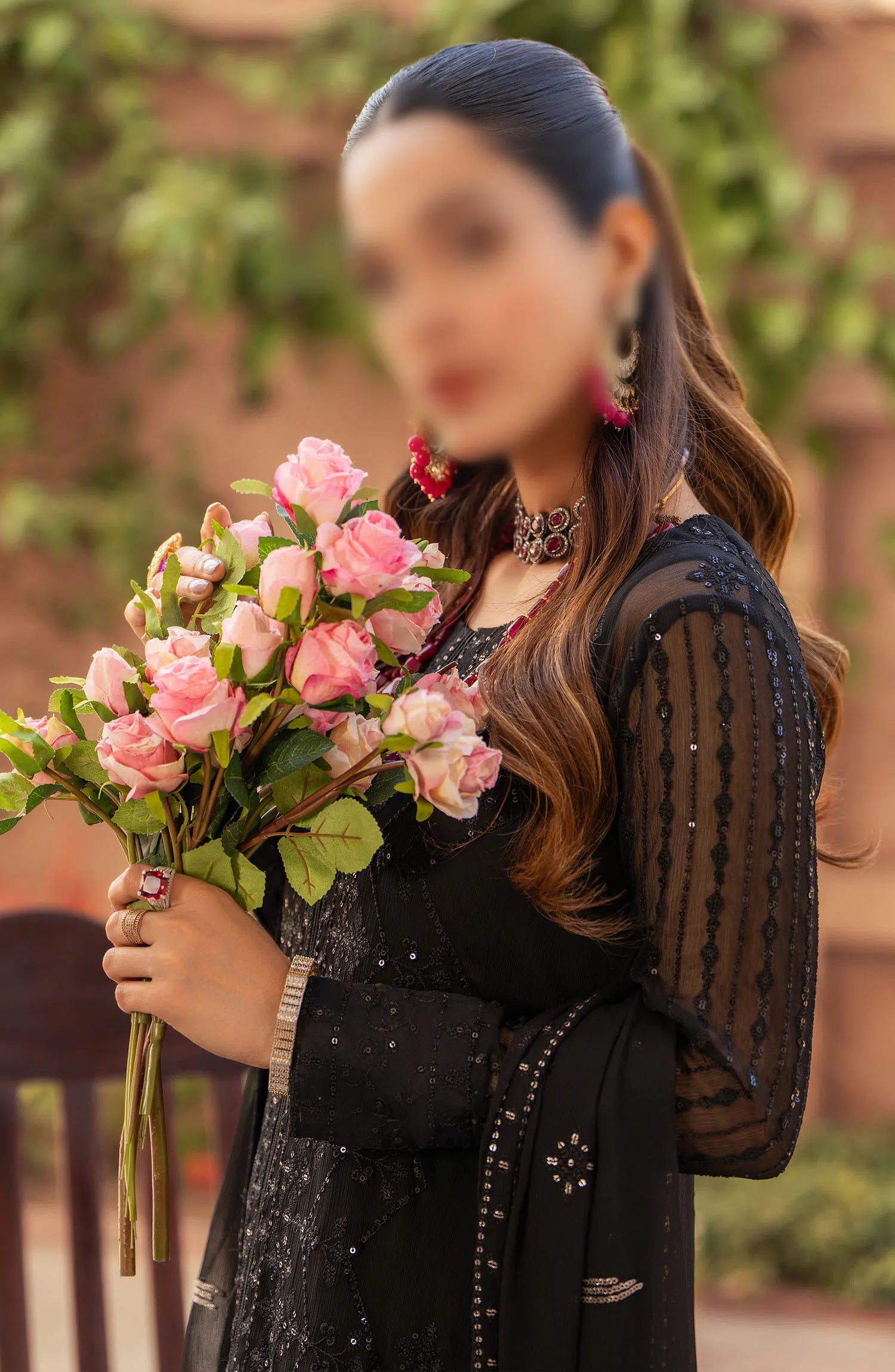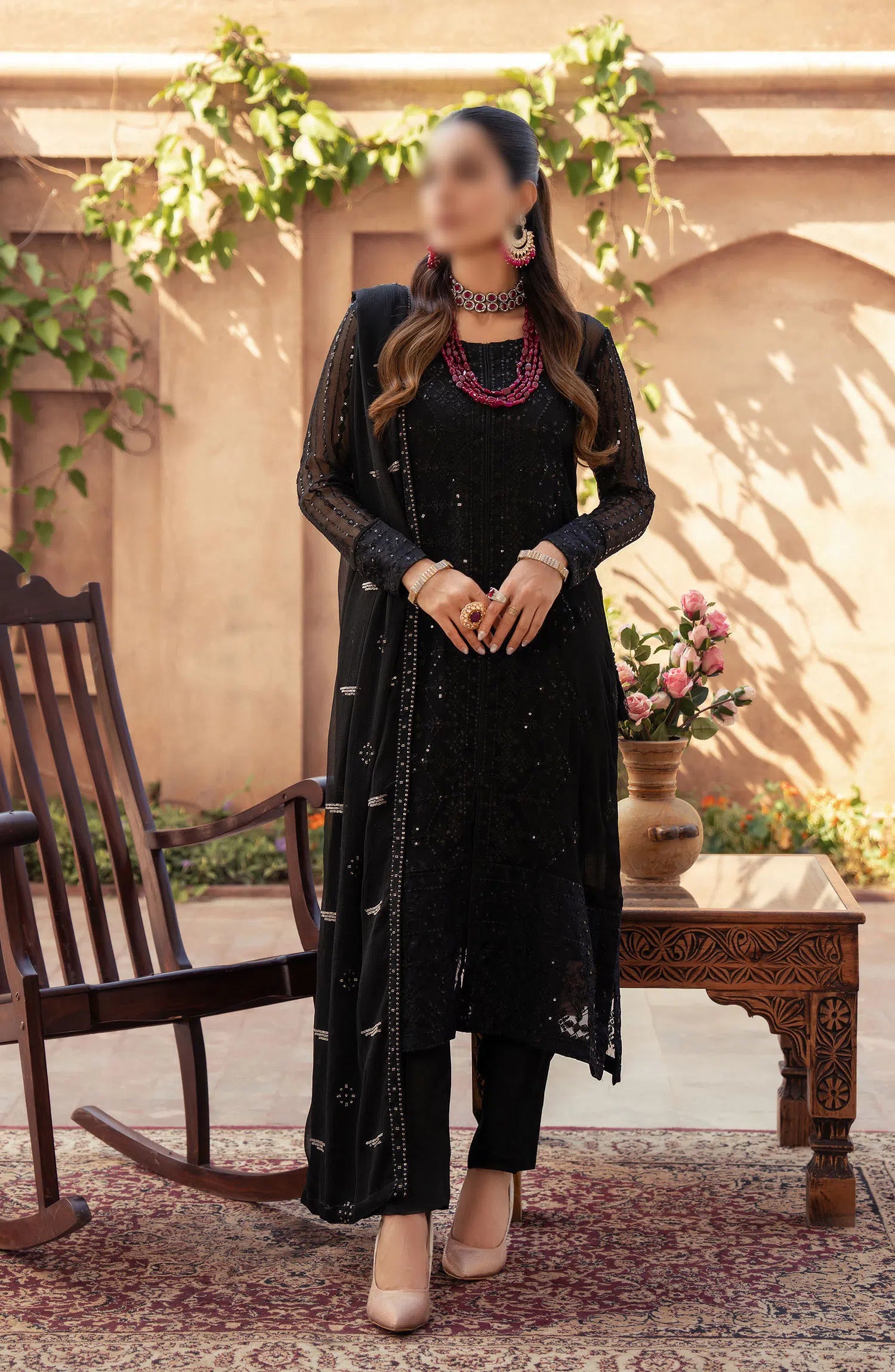 Merakish Unstitched Luxury Chiffon Formal Collection 2024 has been styled in the image for photography and illustrative purposes.