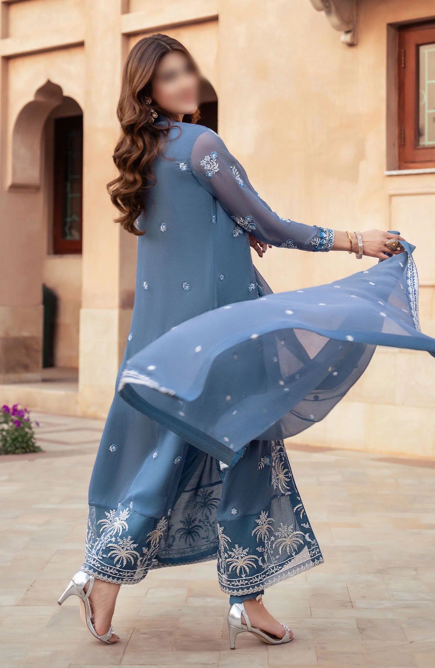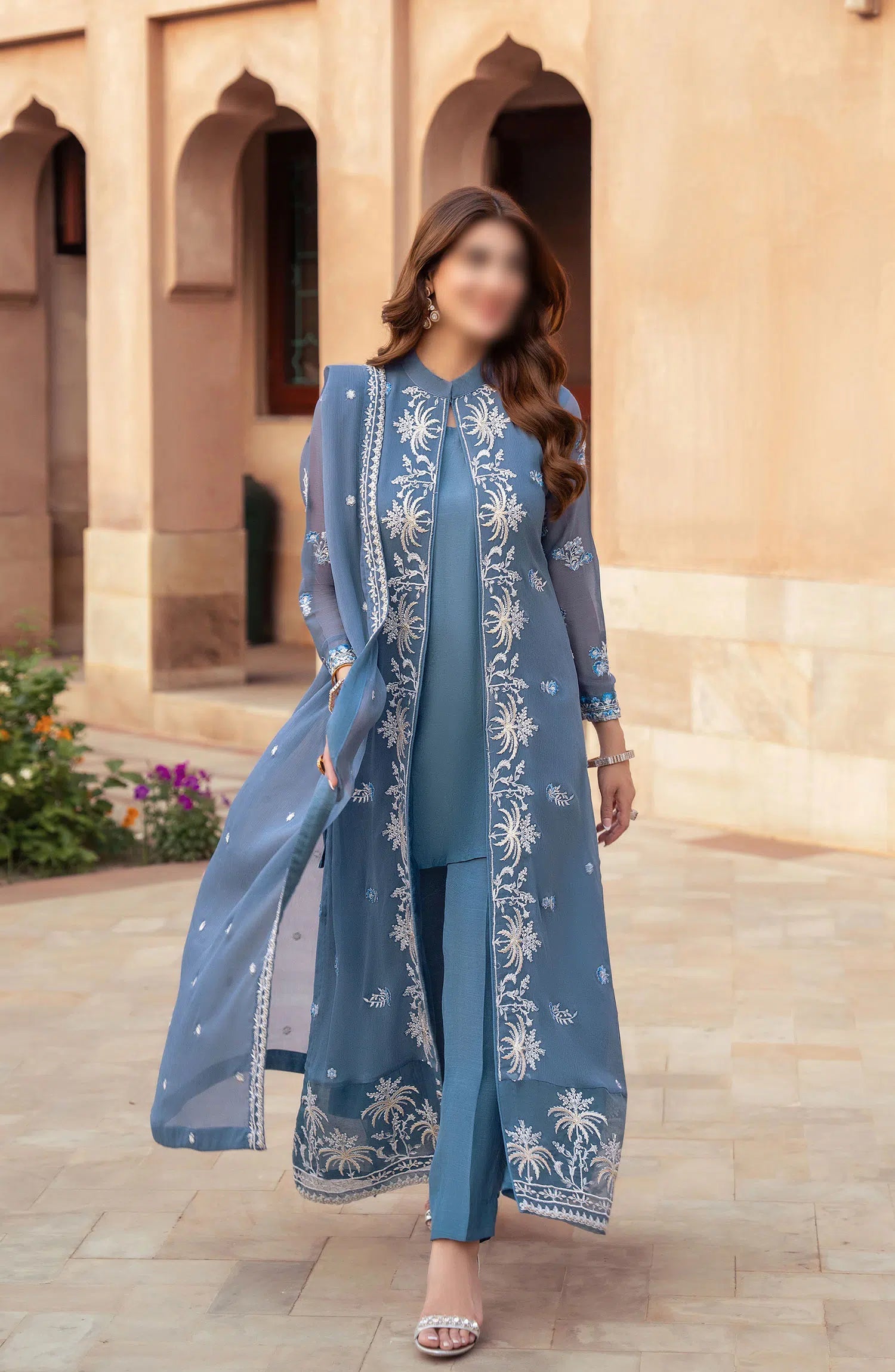 Merakish Unstitched Luxury Chiffon Formal Collection 2024 has been styled in the image for photography and illustrative purposes.