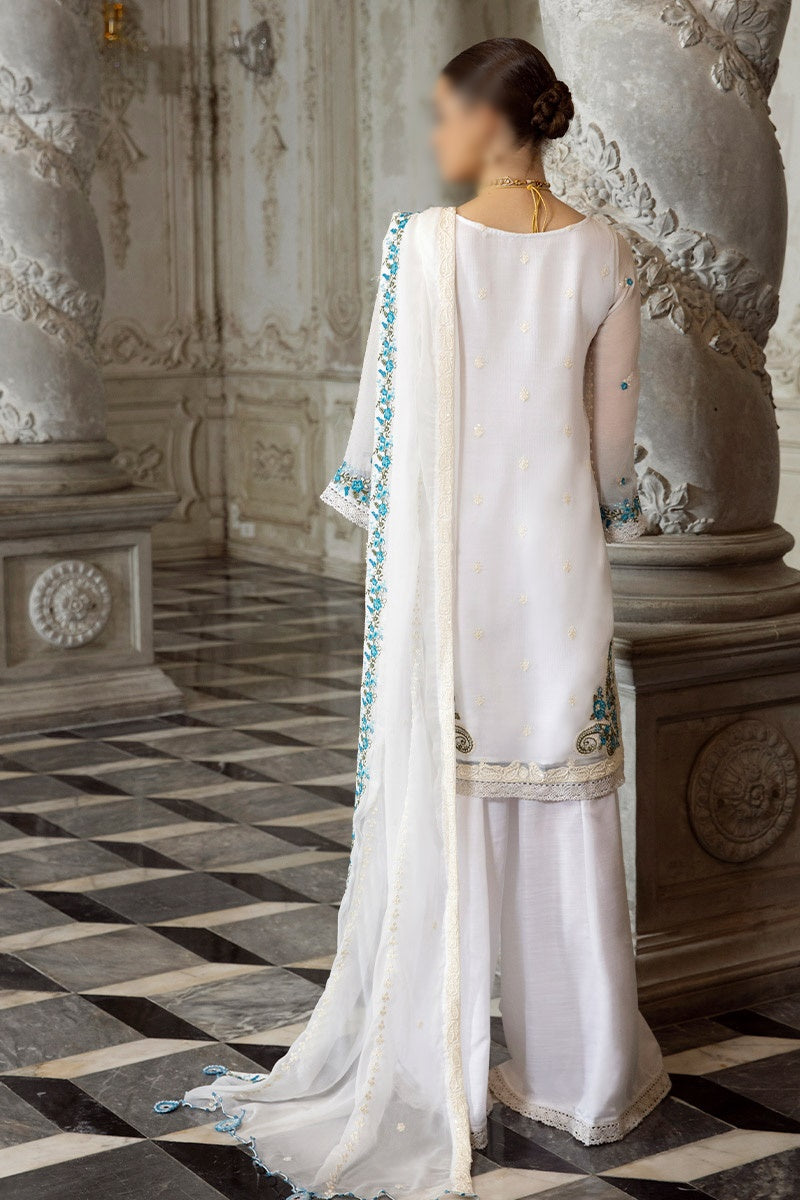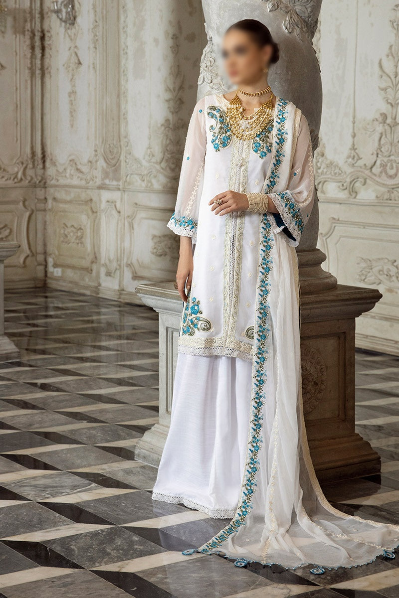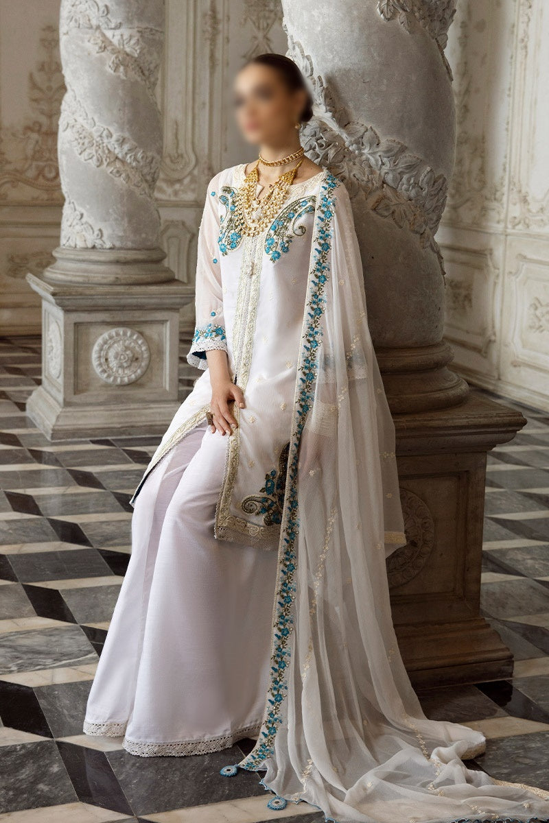 Merakish Unstitched Luxury Formal Collection 2023 has been styled in the image for photography and illustrative purposes.
