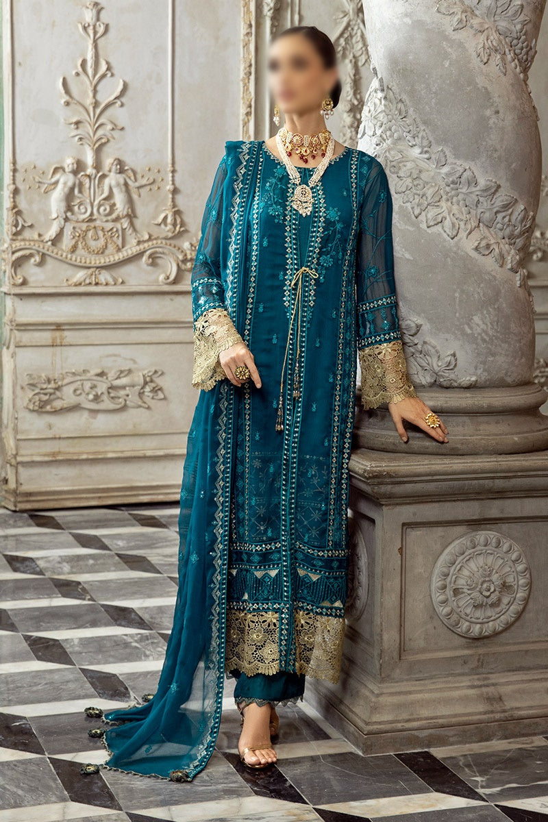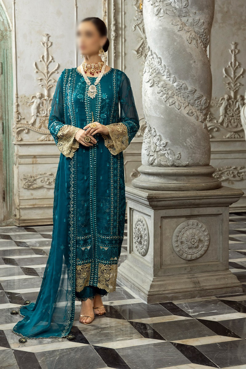 Merakish Unstitched Luxury Formal Collection 2023 has been styled in the image for photography and illustrative purposes.