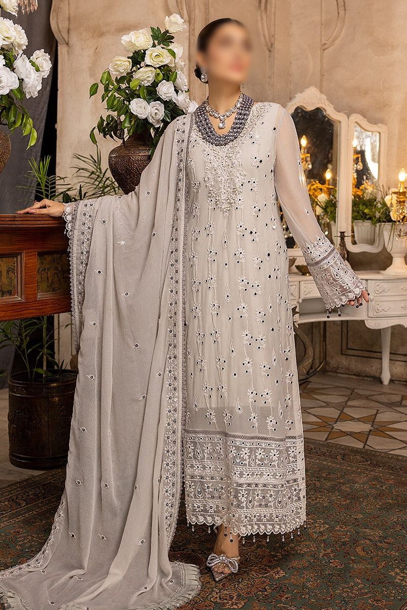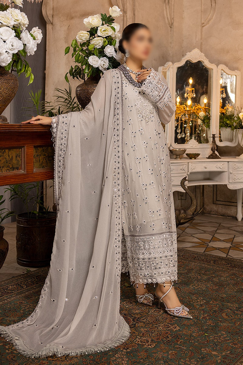 Merakish Unstitched Luxury Formal Collection 2023 has been styled in the image for photography and illustrative purposes.