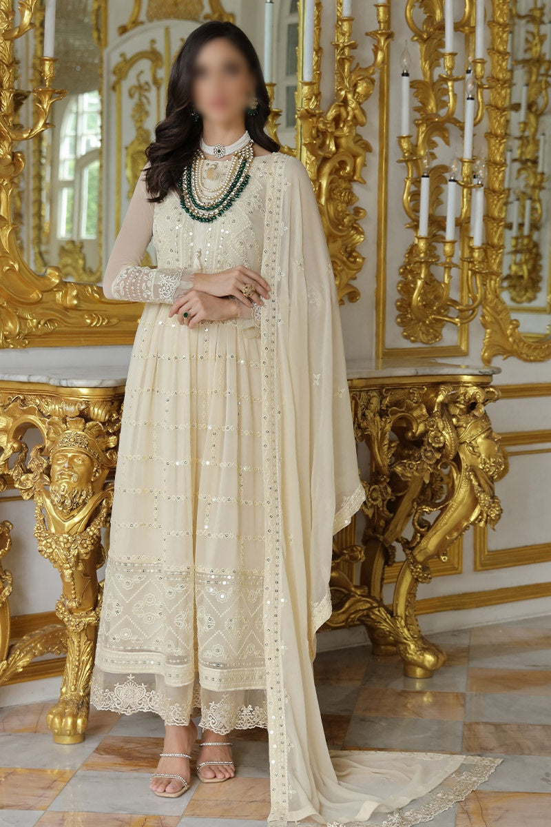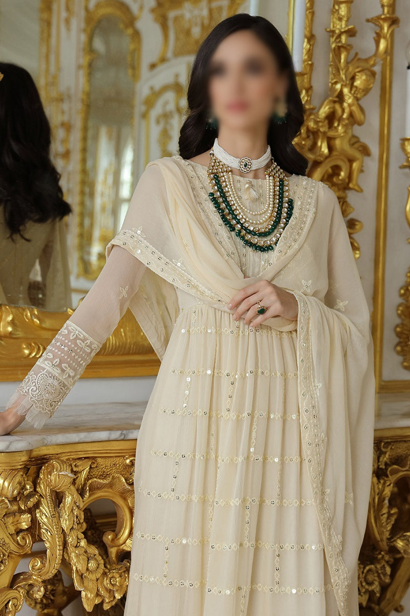 Merakish Unstitched Luxury Formal Collection 2023 has been styled in the image for photography and illustrative purposes.