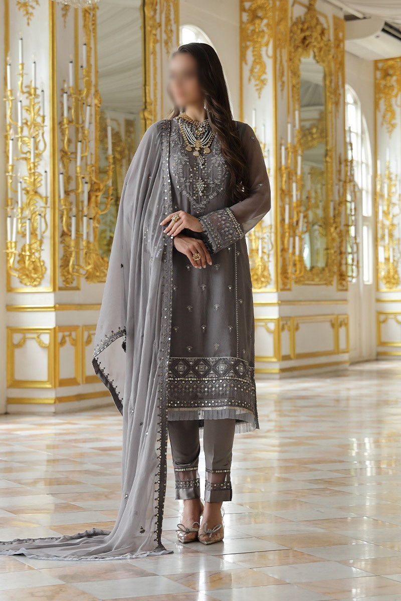 Merakish Unstitched Luxury Formal Collection 2023 has been styled in the image for photography and illustrative purposes.