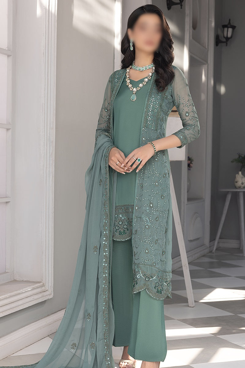 Merakish Unstitched Luxury Formal Collection 2023 has been styled in the image for photography and illustrative purposes.