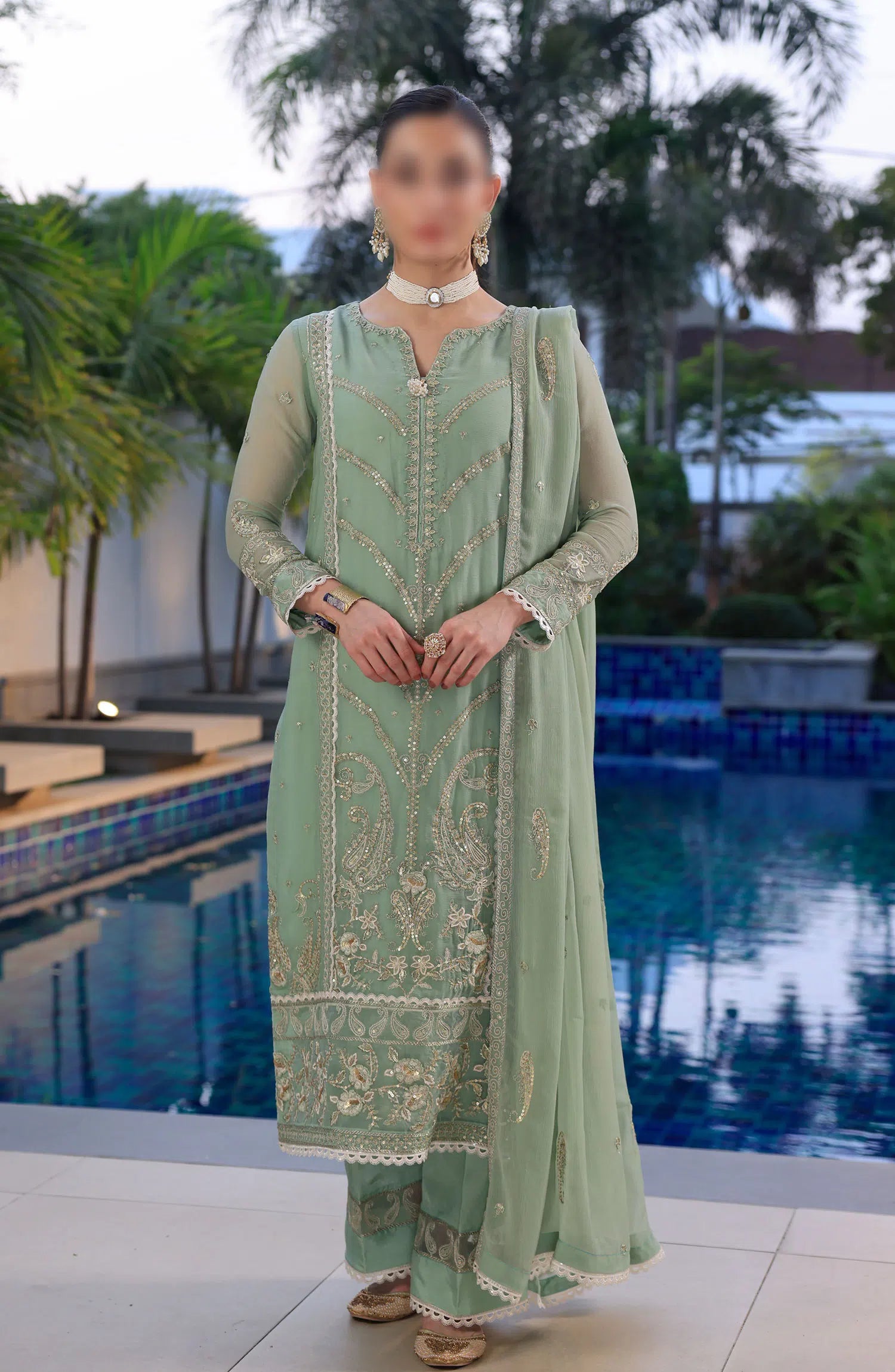 Merakish Unstitched Luxury Formal Collection Vol 12 2024 has been styled in the image for photography and illustrative purposes.