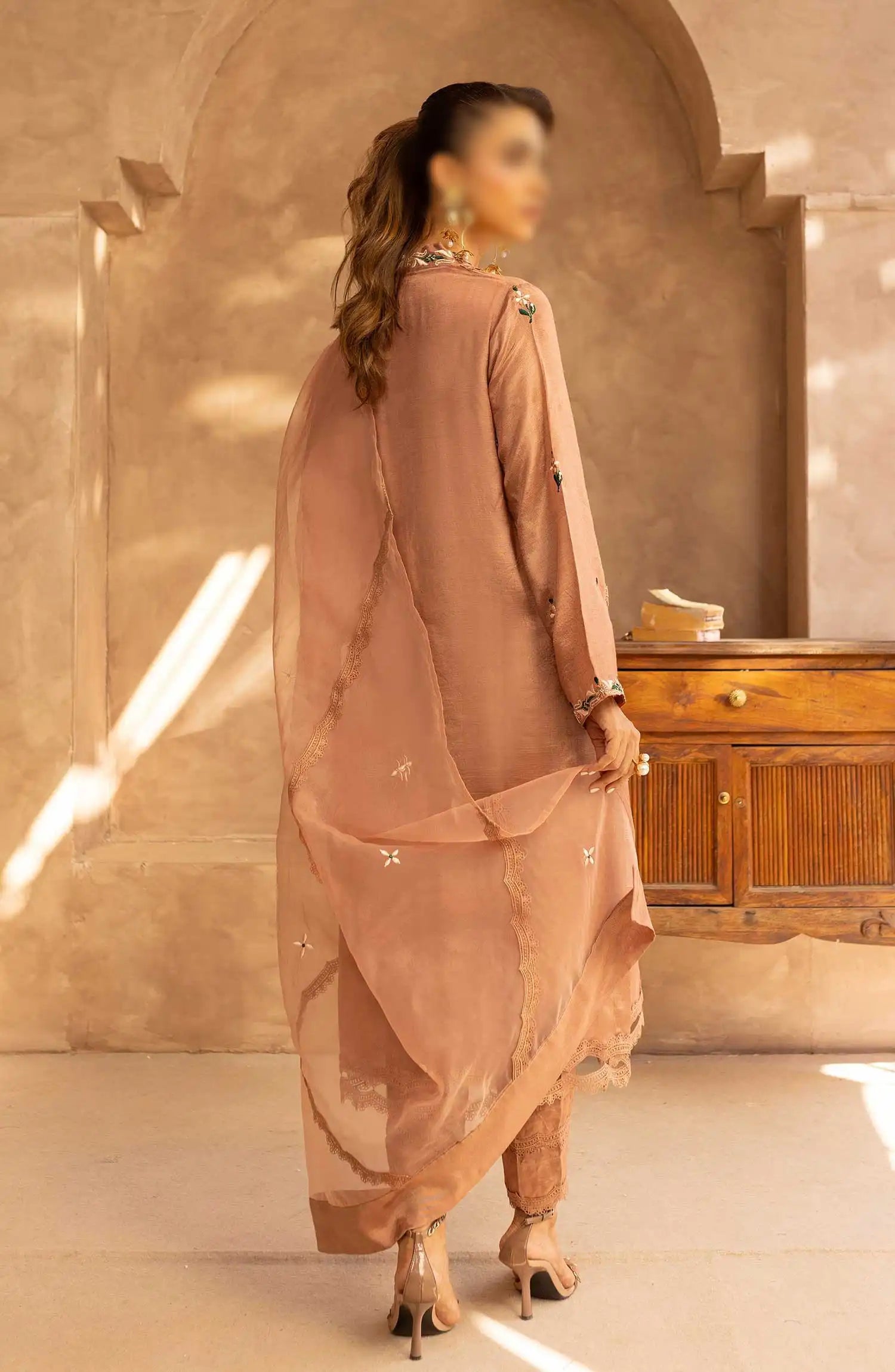 Shafaq by Riaz Arts Luxury Embroidered Peach Leather Unstitched 3 Piece Suit - Design-02 - RA25SHQ - Beige - Winter Collection