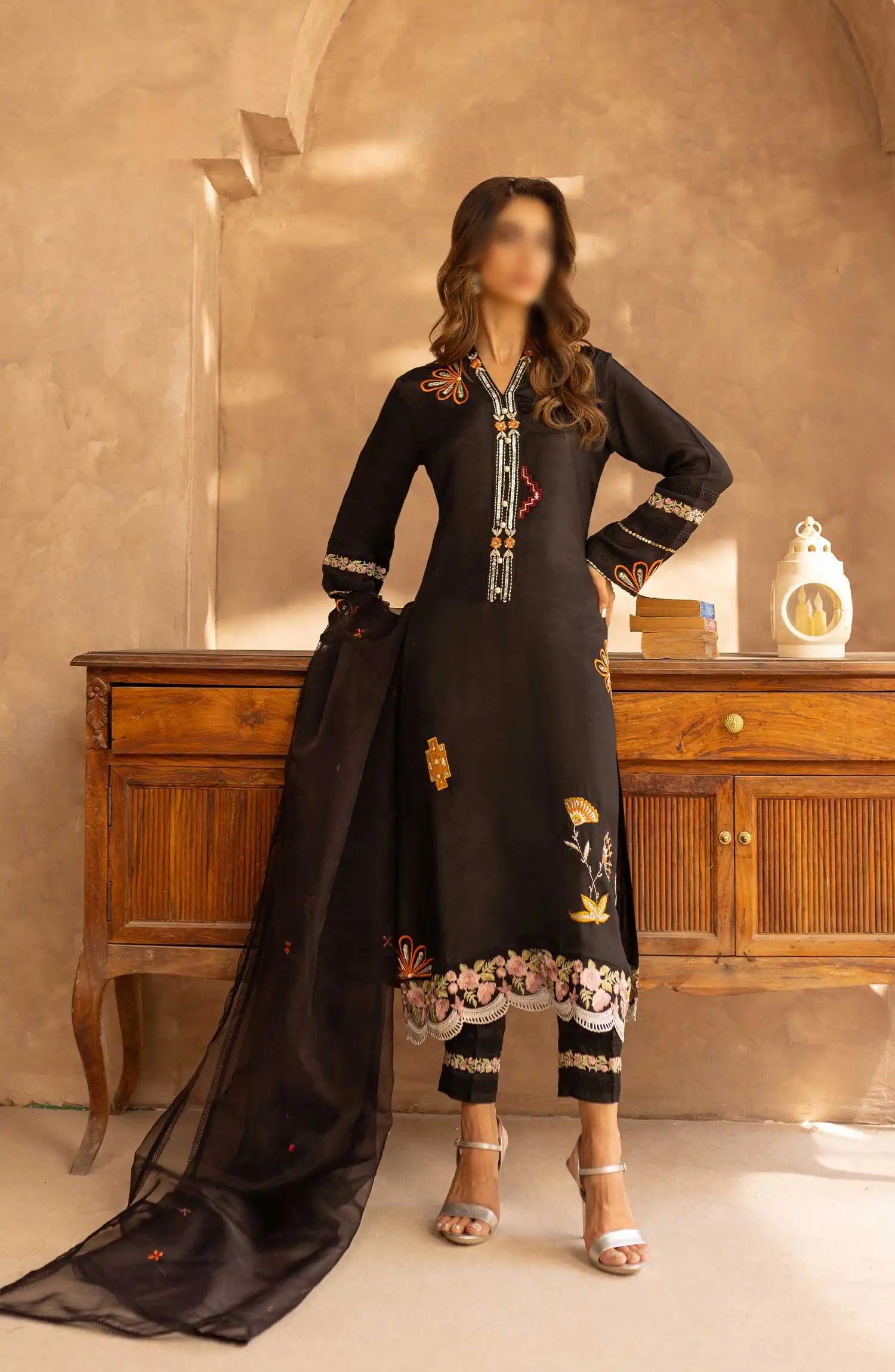 Dupatta: Made from delicate organza, beautifully embroidered to complement the shirt.