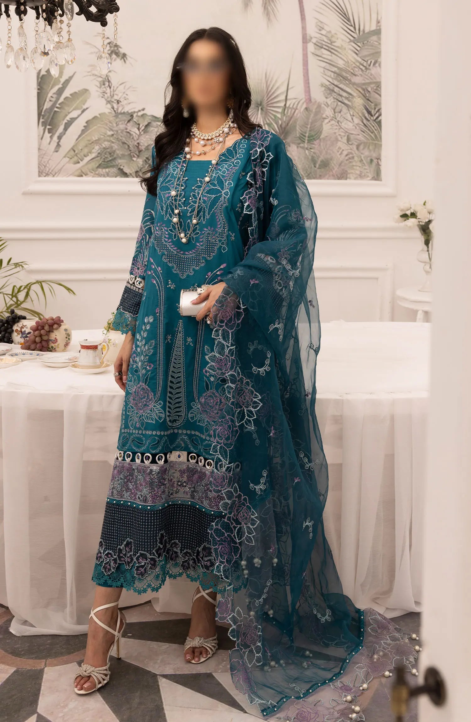 Zanera by Johra Printed Lawn Unstitched 3 Piece Suit - JH-1409 - JH25ZANR - Teal - Casual Collection