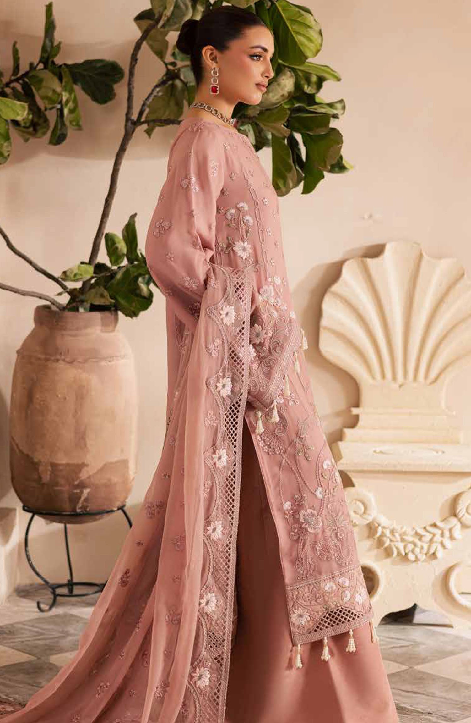 Chiffon Embroidered Sleeves.