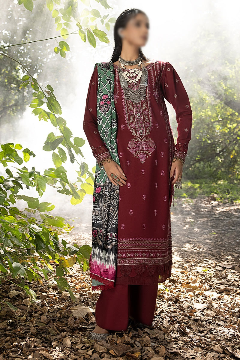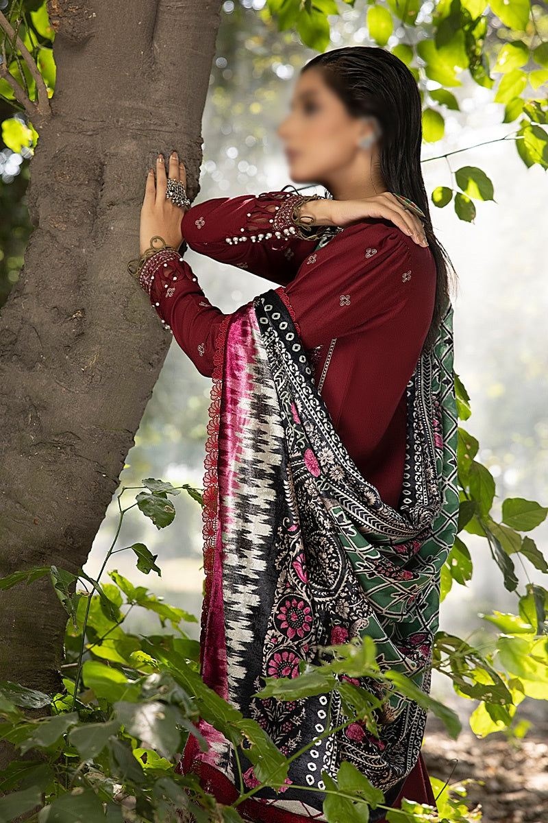 Mirk Embroidered Dhanak Collection 2023 has been styled in the image for photography and illustrative purposes.