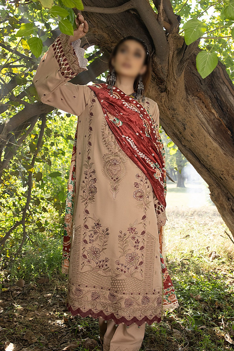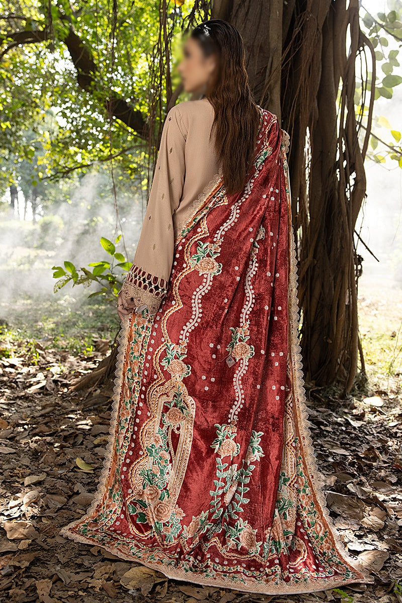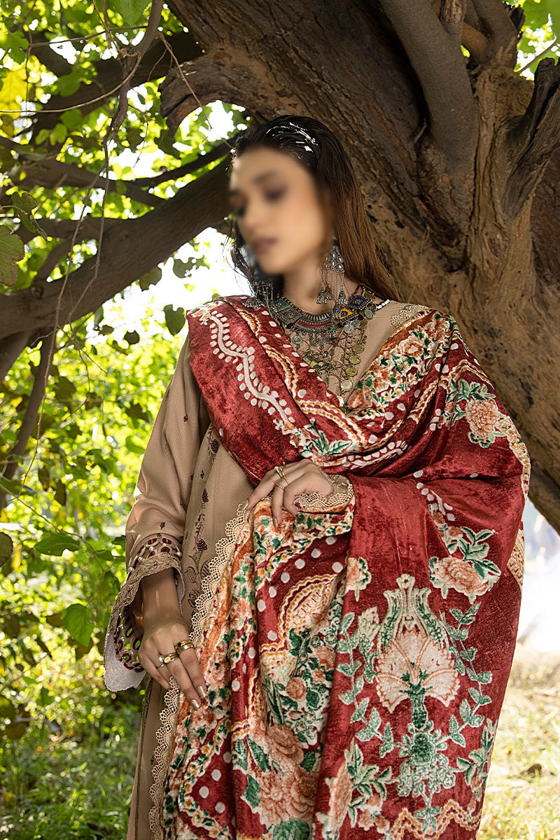 Mirk Embroidered Dhanak Collection 2023 has been styled in the image for photography and illustrative purposes.