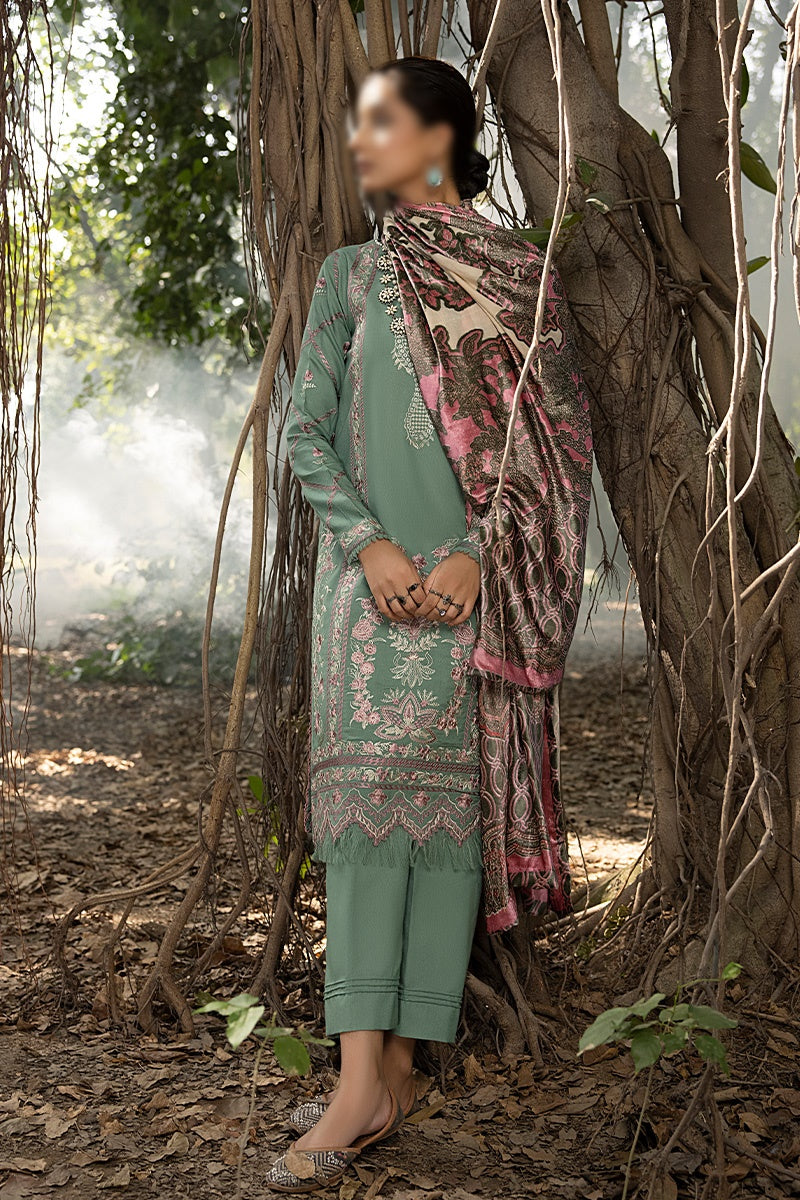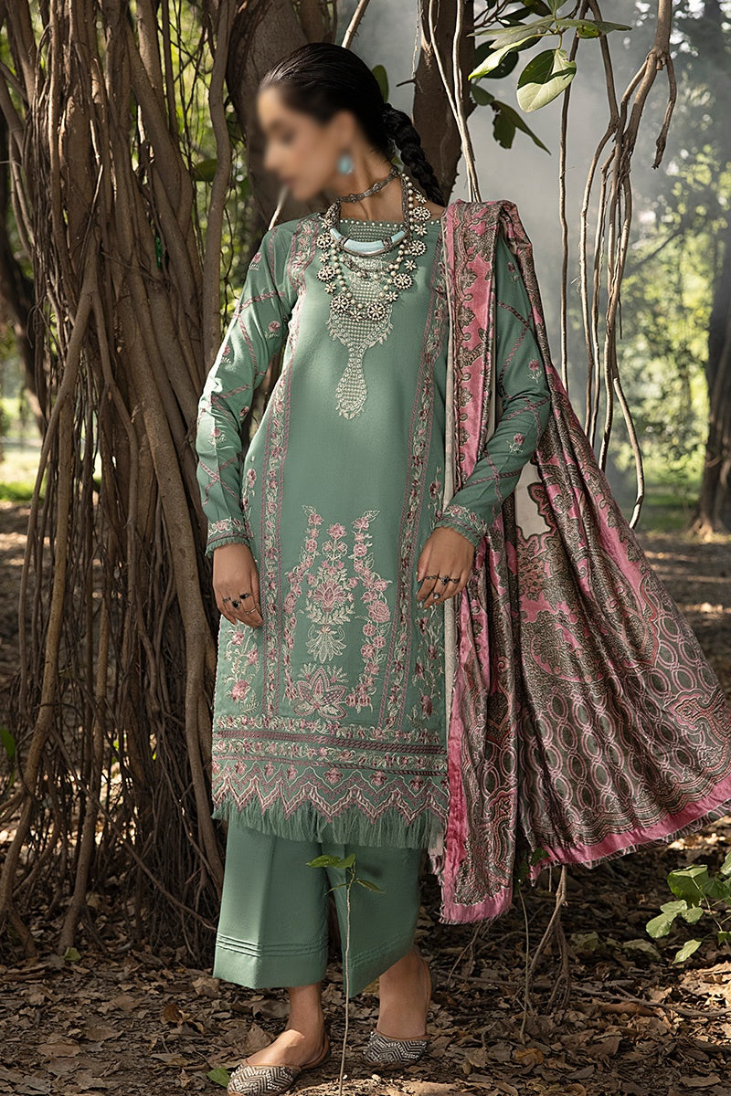 Mirk Embroidered Dhanak Collection 2023 has been styled in the image for photography and illustrative purposes.
