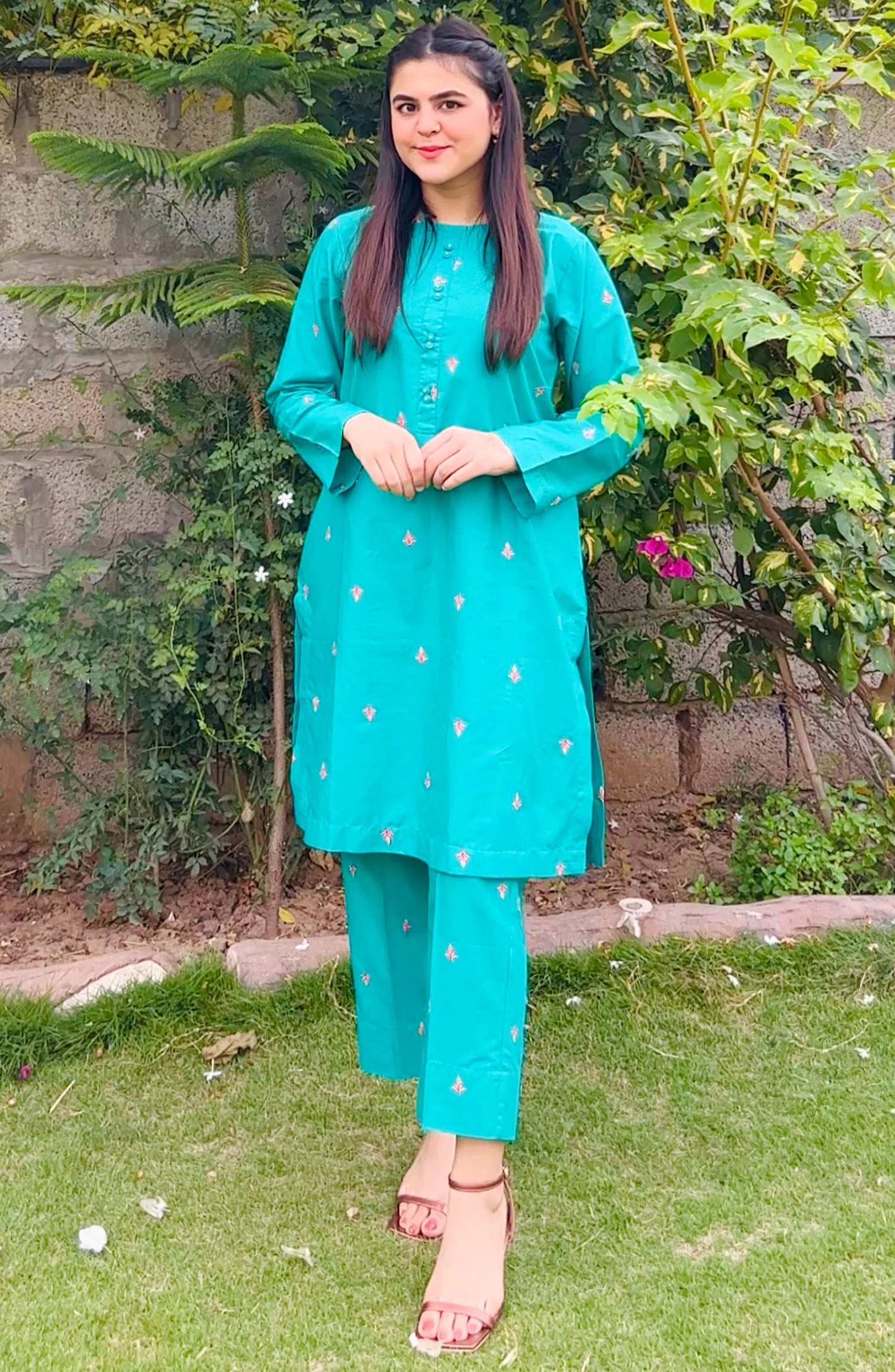 Modest Casual Cotton Stitched 2 Piece Suit - W271-Grn Saira - MOD25WWC - Green - Casual Collection