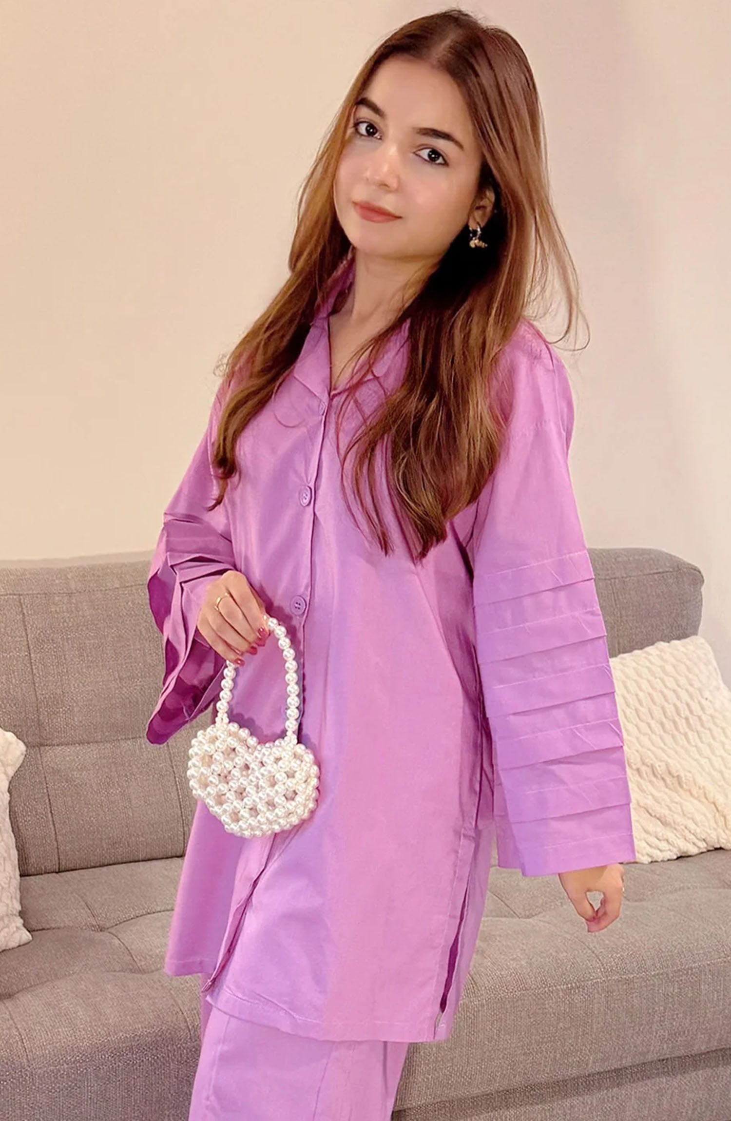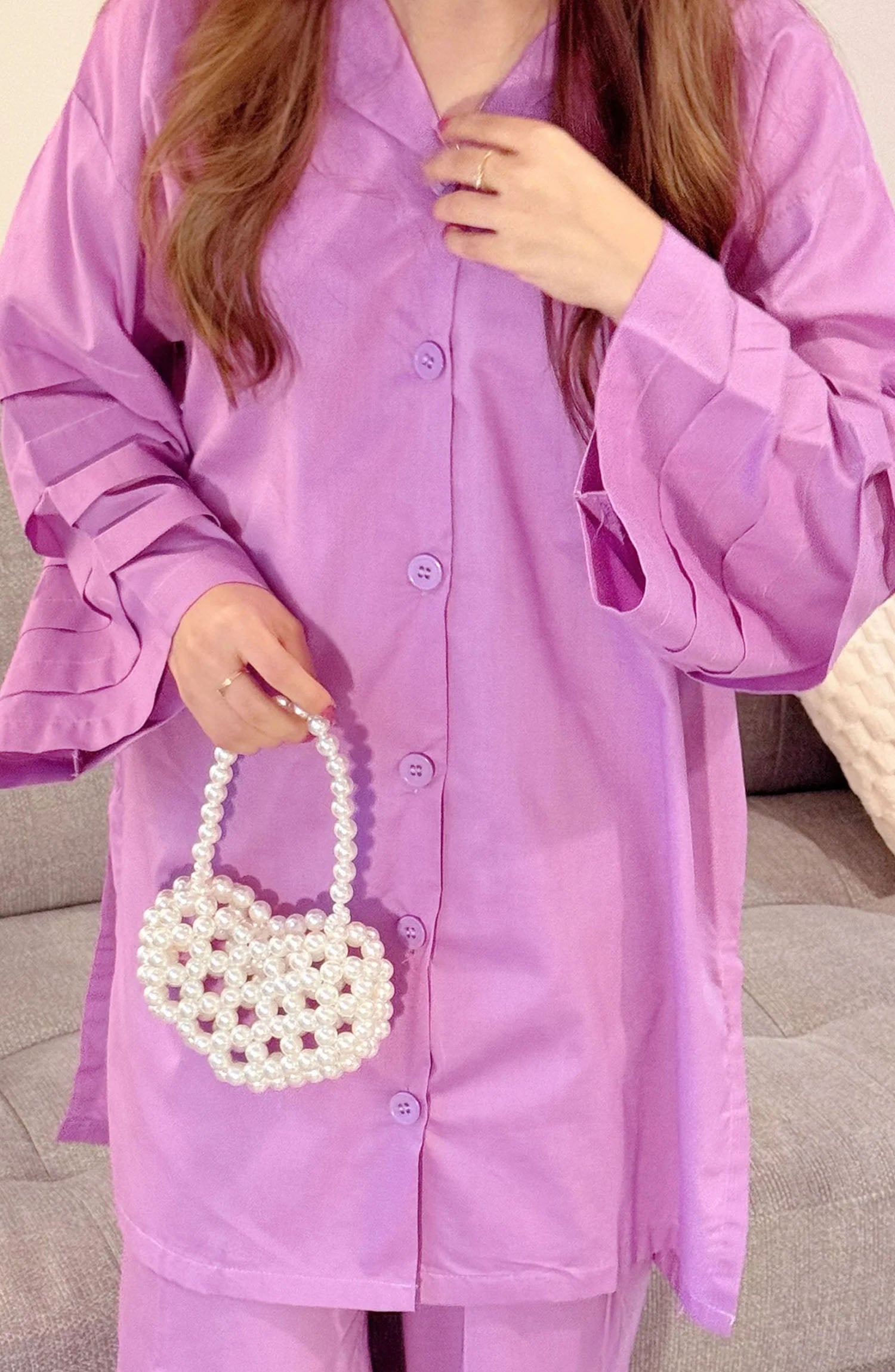 Modest Casual Cotton Stitched 2 Piece Suit - ZAW06-Prpl Arisha - MOD25WWC - Purple - Casual Collection