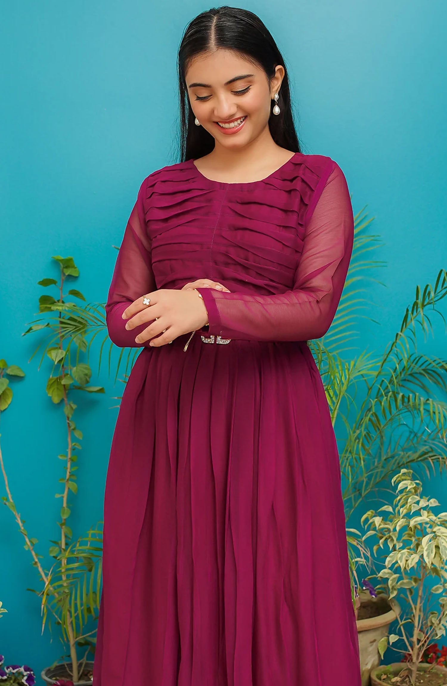 Modest Casual Crinkle Stitched 2 Piece Suit - ZAW03-Mar Veeliria - MOD25WWC - Purple - Casual Collection