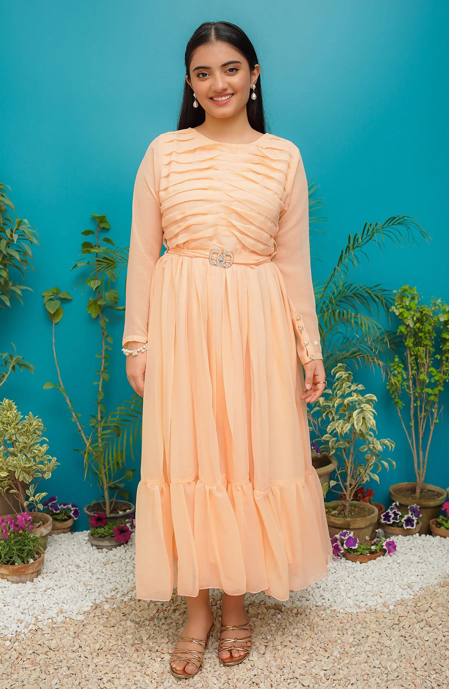 Modest Casual Crinkle Stitched 2 Piece Suit - ZAW03-Pch Selena - MOD25WWC - Peach - Casual Collection