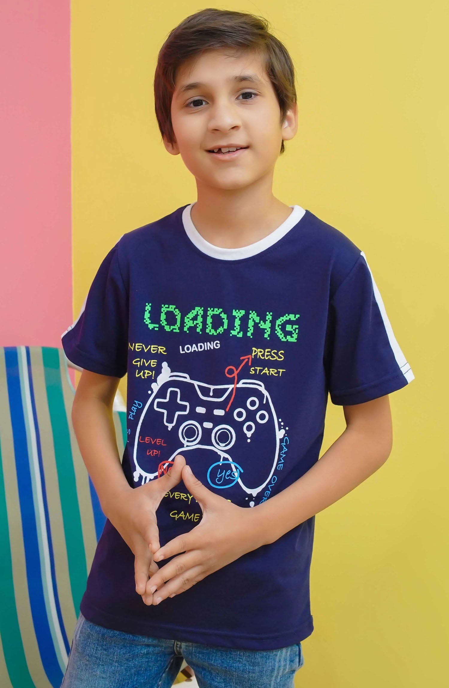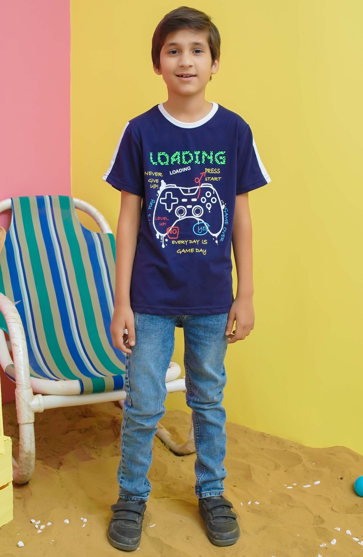 Home Modest Casual Jersey Stitched T-Shirt - BS2406-Nblu Game Pad Graphic Tee - MOD25STS - Blue - Casual Collection