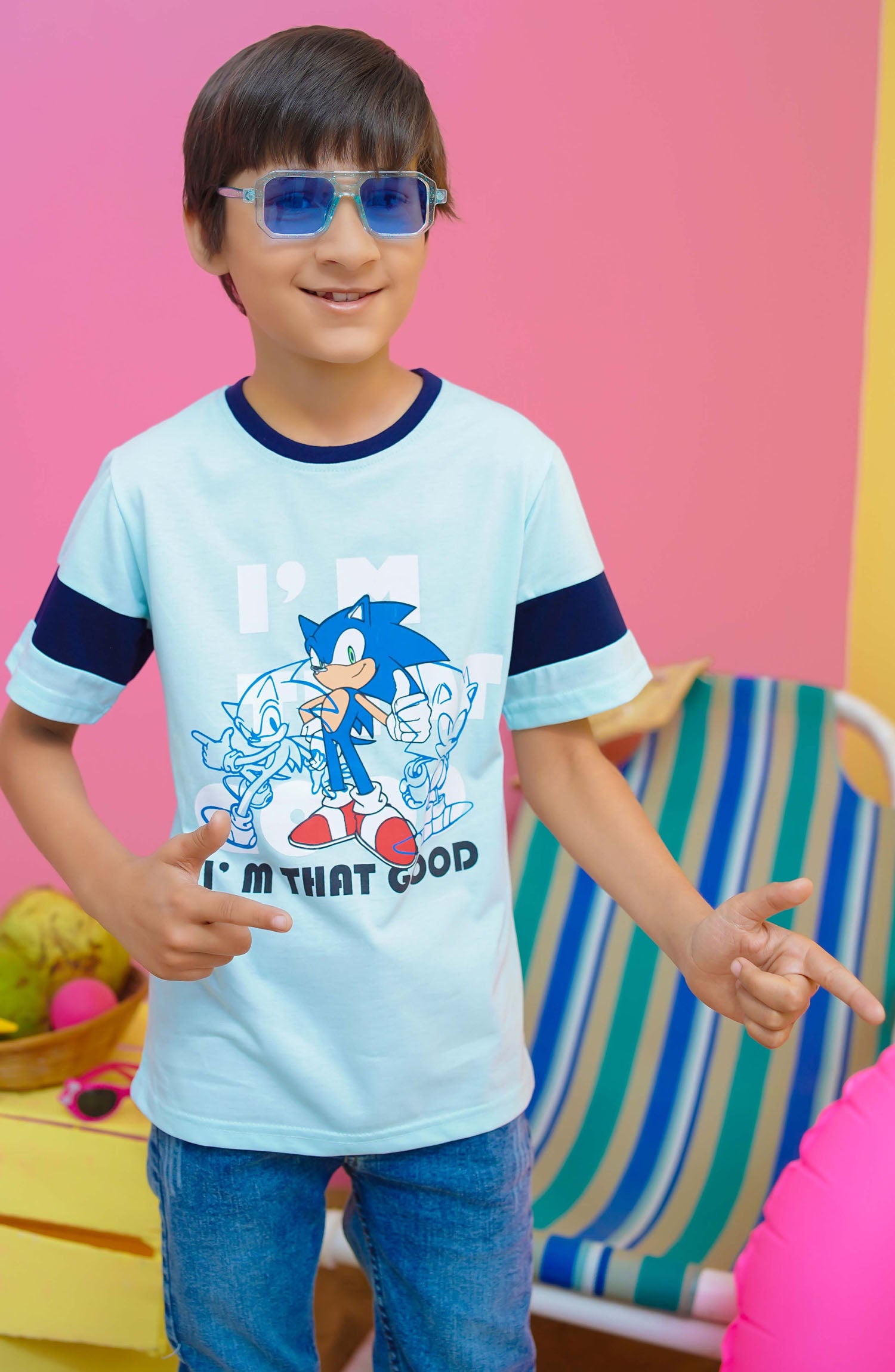 Home Modest Casual Jersey Stitched T-Shirt - BS2407-Nblu Sonic Graphic Tee - MOD25STS - Blue - Casual Collection