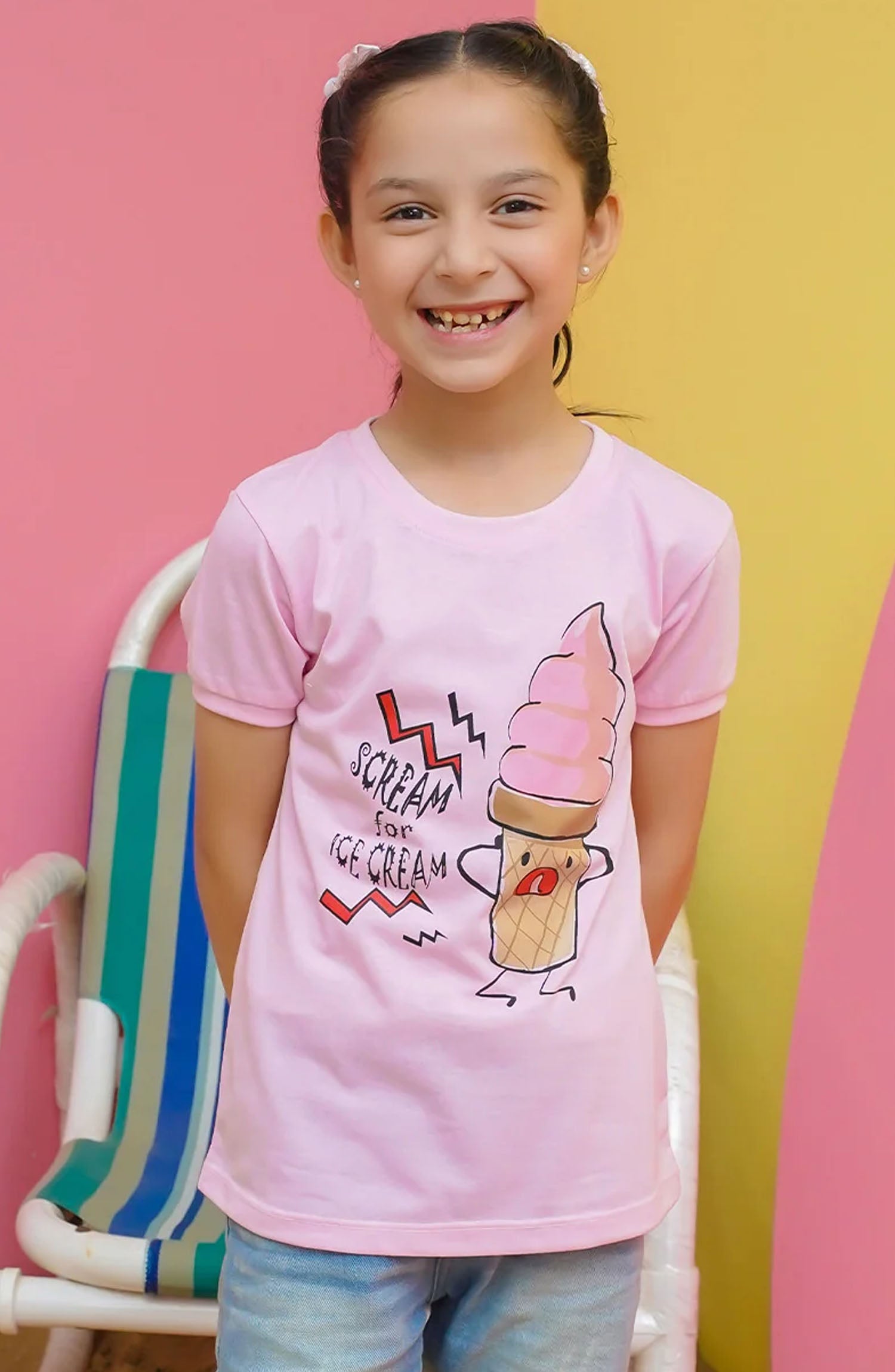 Home Modest Casual Jersey Stitched T-Shirt - GS2405-Pnk Ice Cream Graphic Tee - Pink - MOD25STS - Pink - Casual Collection