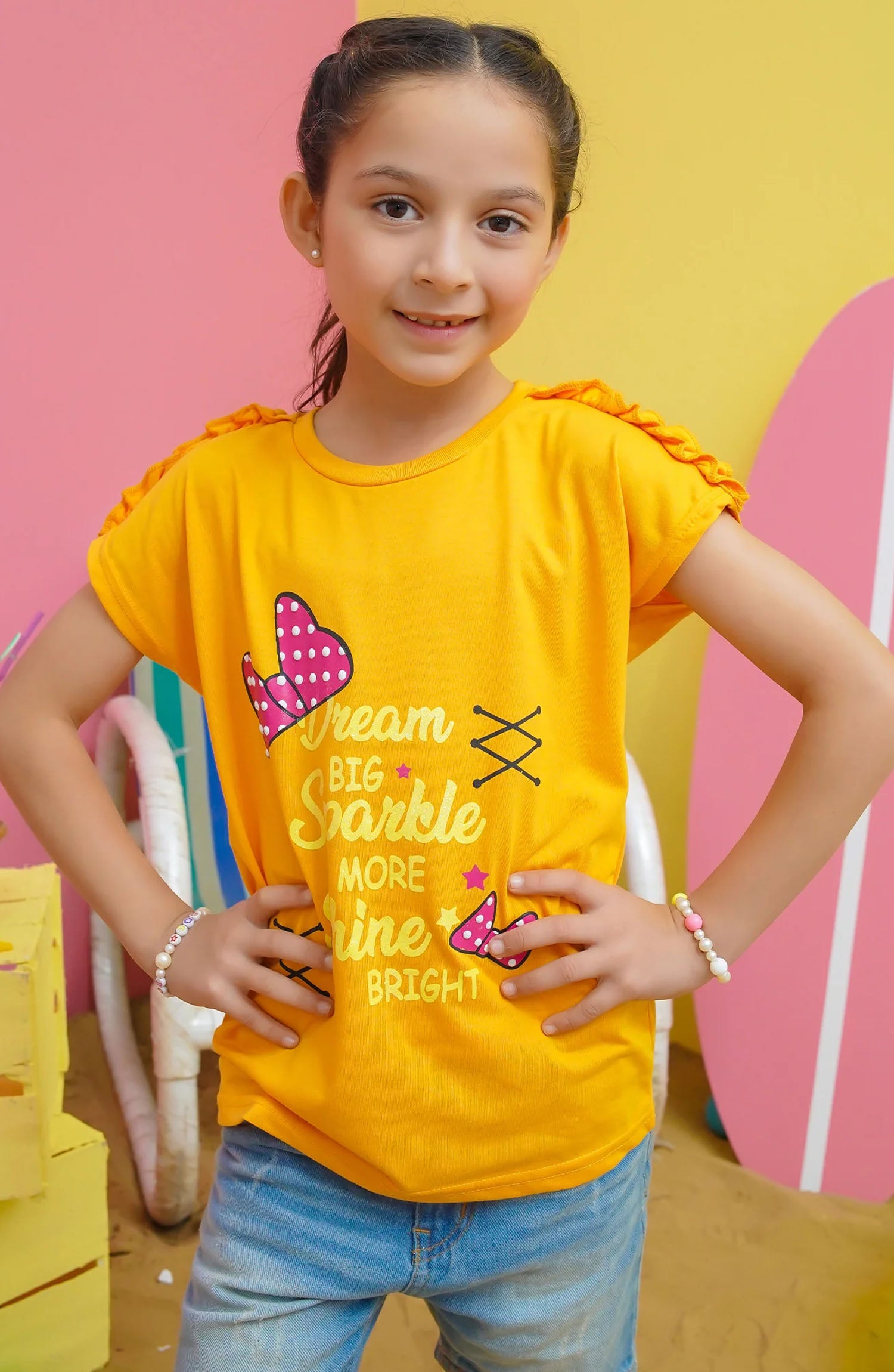Modest Casual Jersey Stitched T-Shirt - GS2409-Mst Shine Bright Graphic Tee - MOD25STS - Yellow - Casual Collection