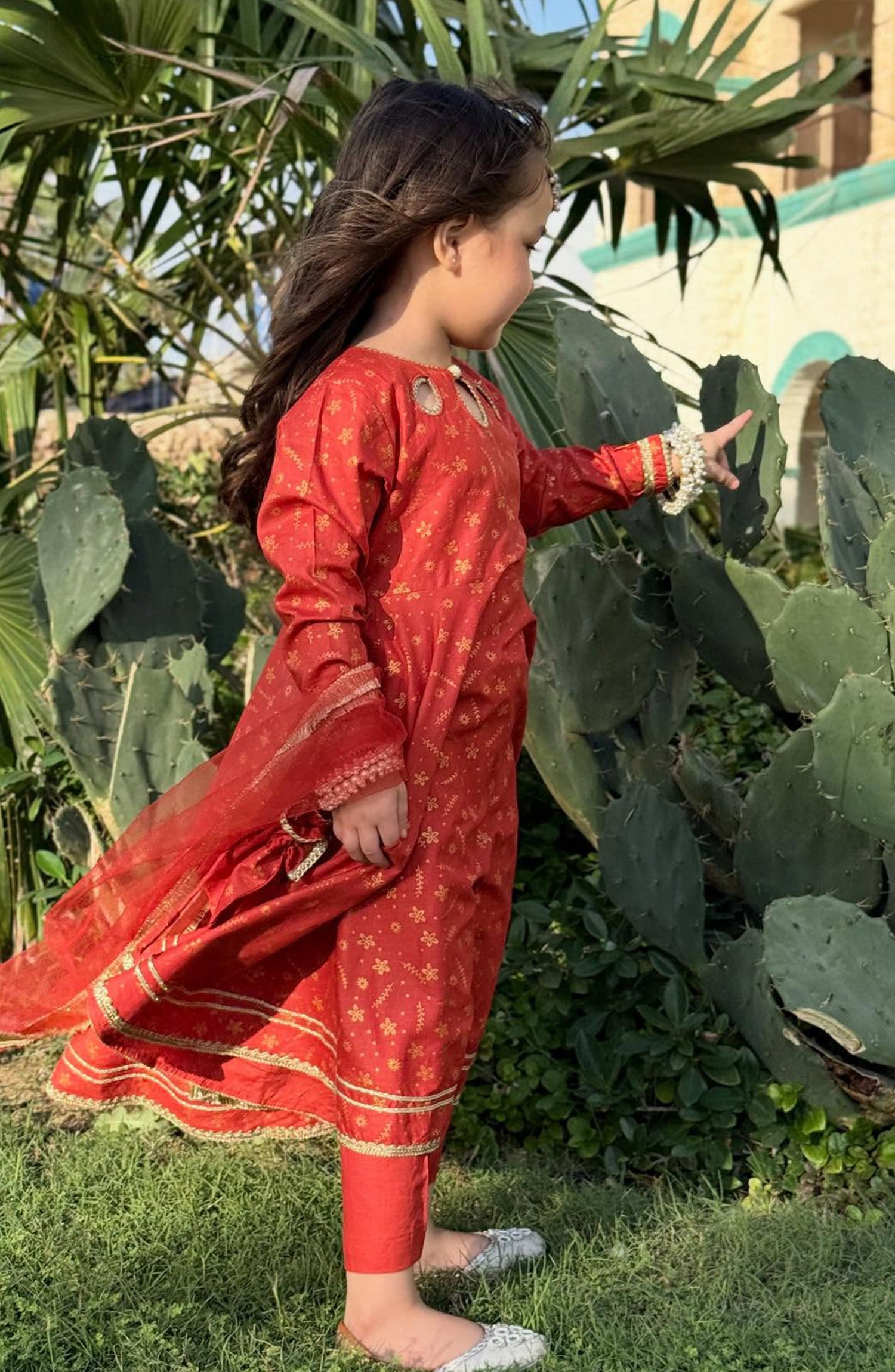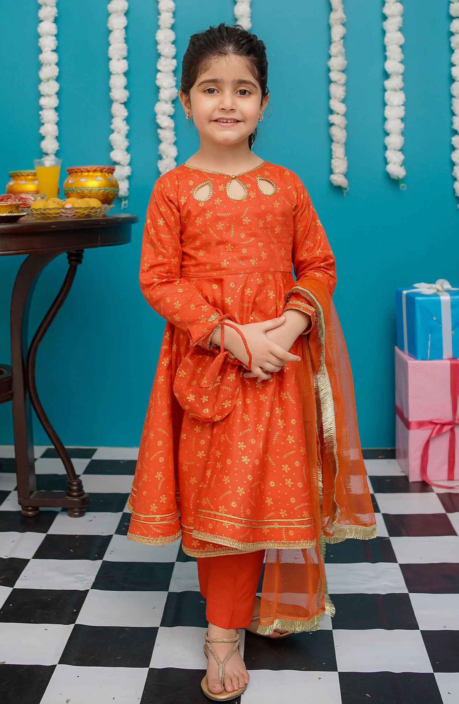 The standard style comes as a long-sleeved kameez with dupatta and trouser/shawlar.