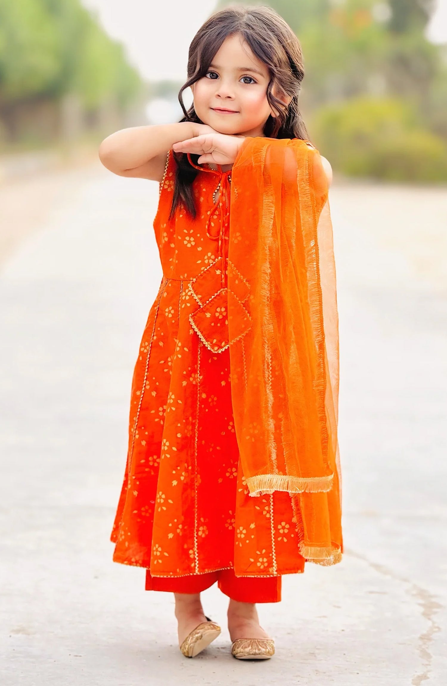 Modest Festive Girls Cotton Stitched 3 Piece Suit
