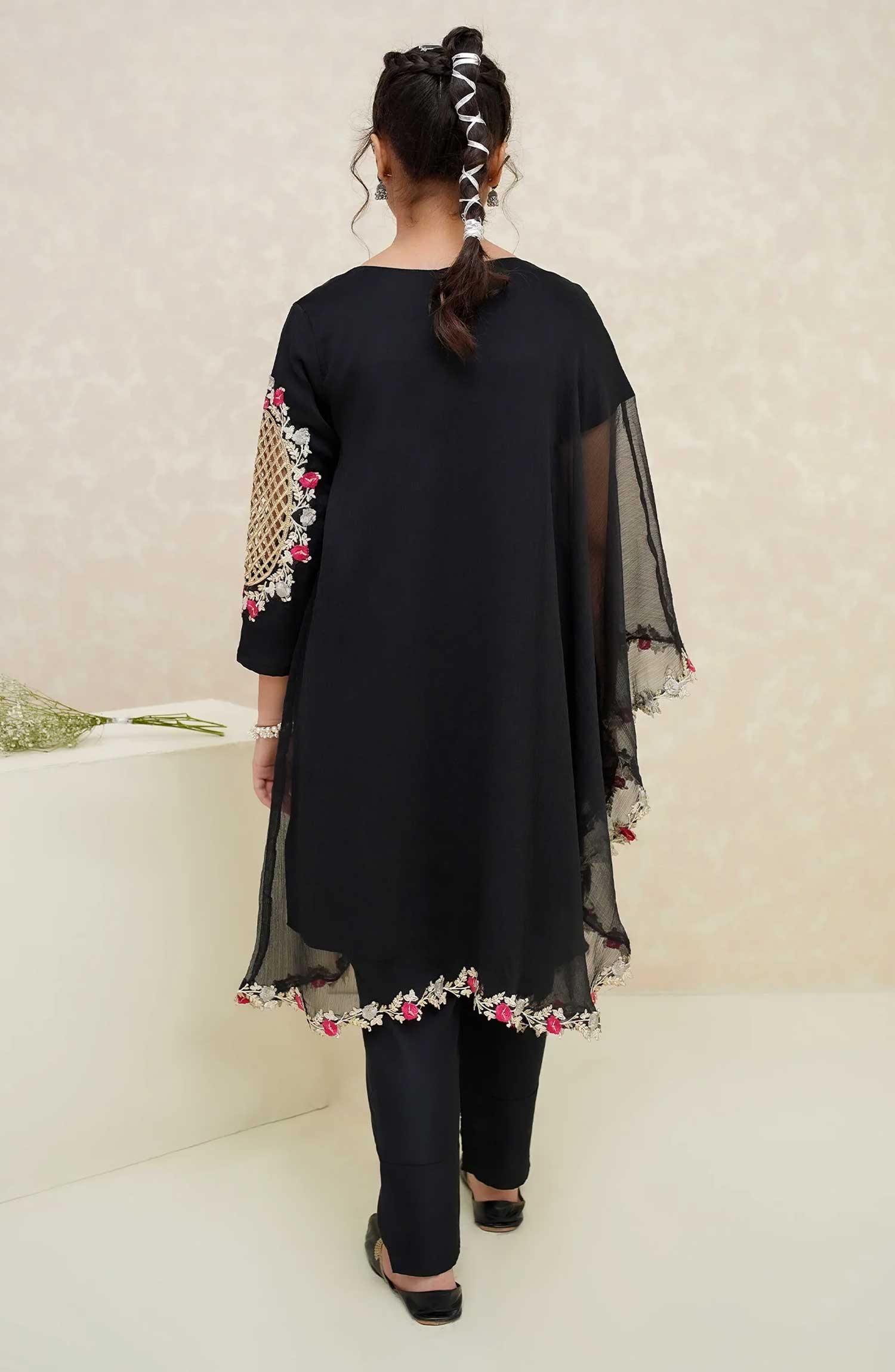 Home Modest Embroidered Chiffon Stitched 3 Piece - Pearl Cape Dress - Black - MD25F - Festive Collection