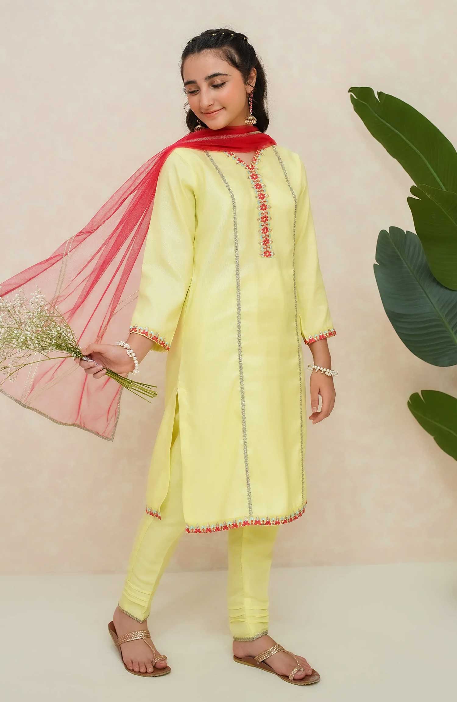 Home Modest Embroidered Raw Sillk Stitched 3 Piece - Chamak - MD25F - Festive Collection