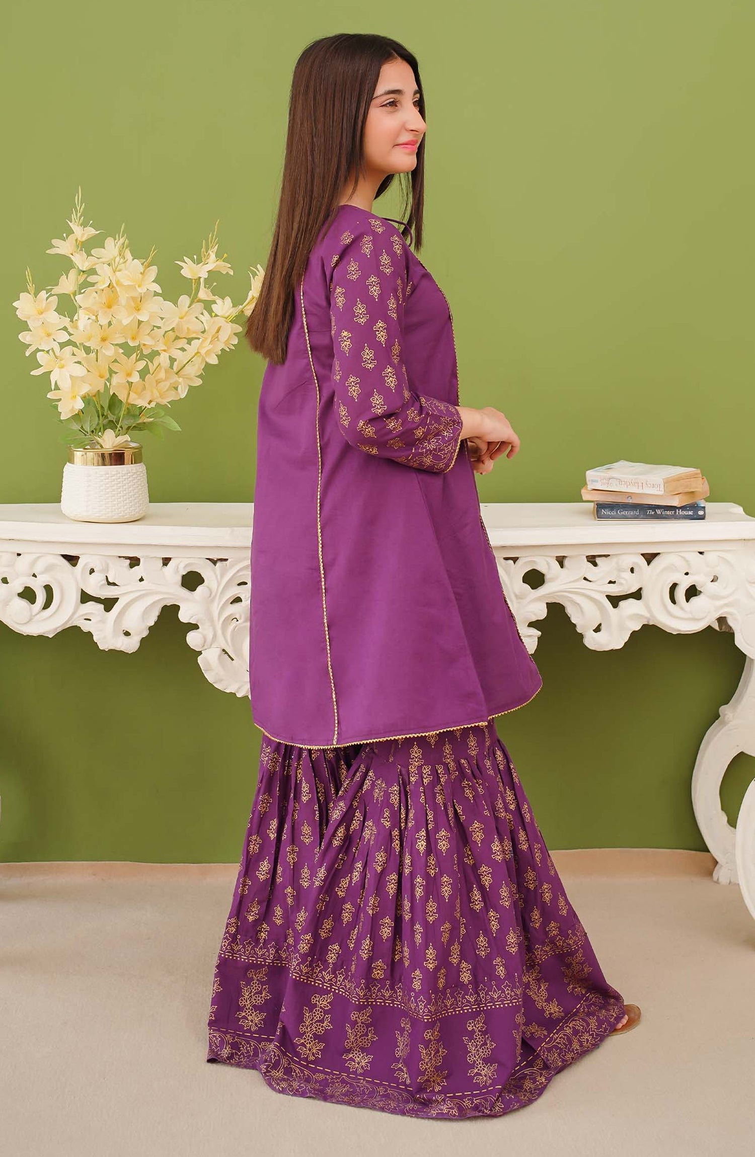 3 Piece Purple Printed Cotton Gharara