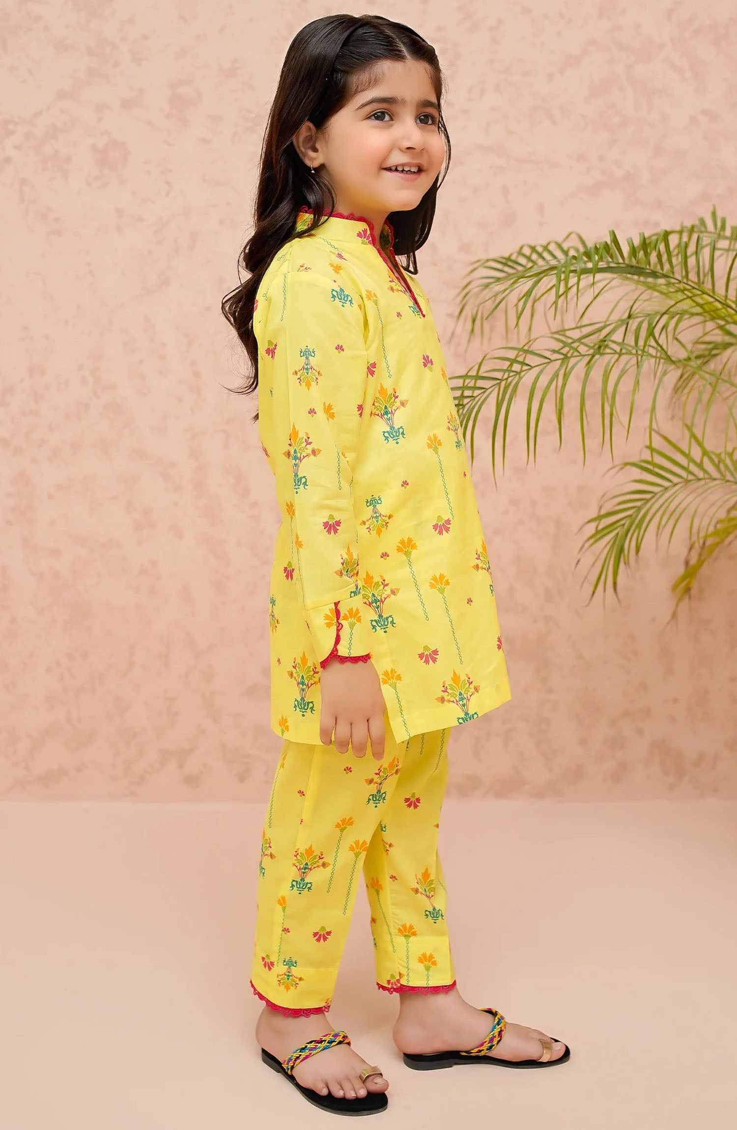 This charming Mango Mist lawn 2-piece dress set is perfect for little girls aged 1 to 7 years. Crafted from soft, breathable lawn fabric, it ensures comfort throughout the day, making it ideal for casual wear. The bright yellow color adds a cheerful touch, brightening up any occasion. Designed with both style and ease in mind, this outfit allows your child to move freely while looking adorable. A delightful choice for everyday wear that combines practicality with a gentle, sunny charm.