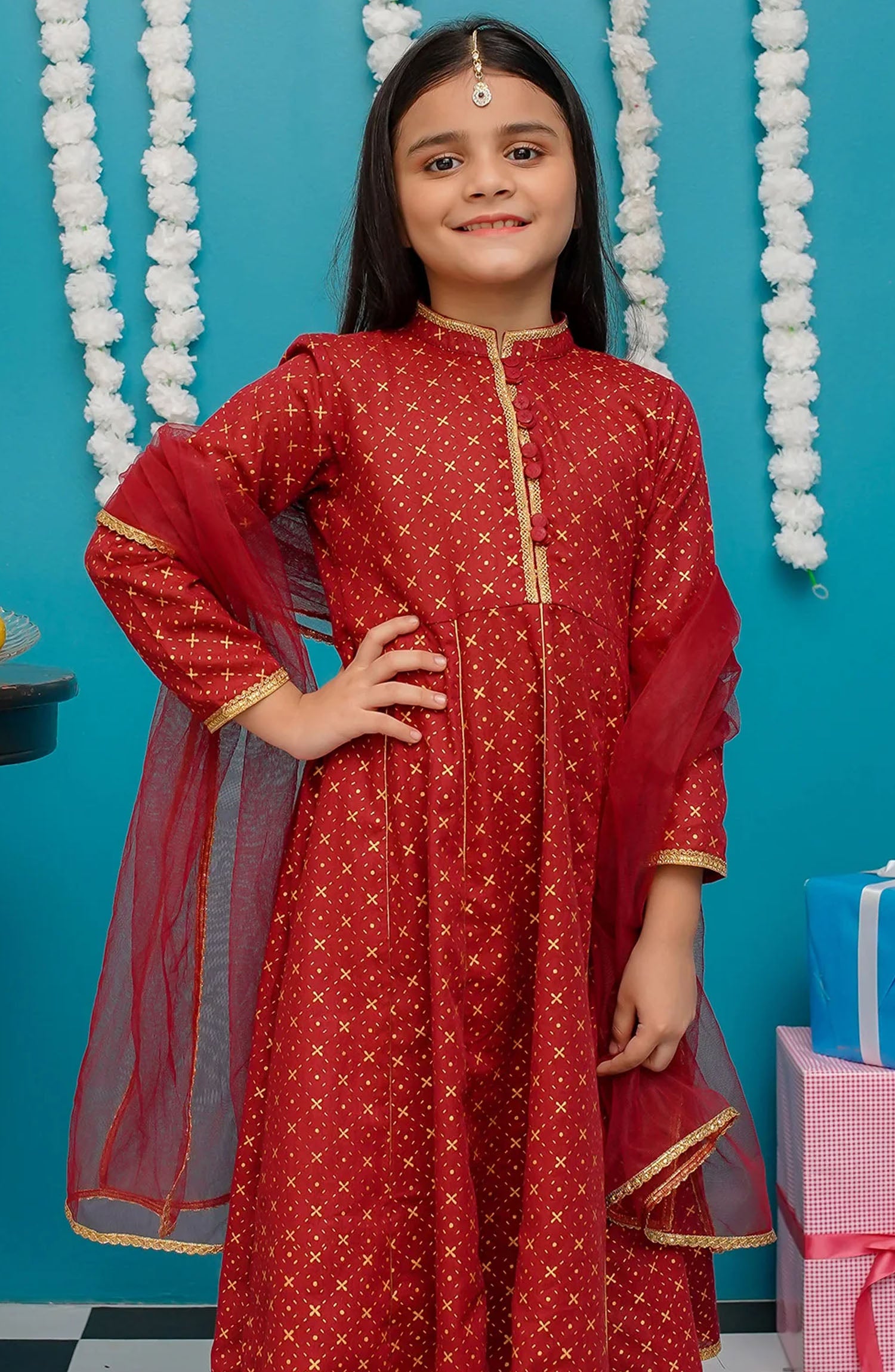 Modest Toddlers 3 Piece Frock - 9280 - MOD25EKK - Red - Festive Collection