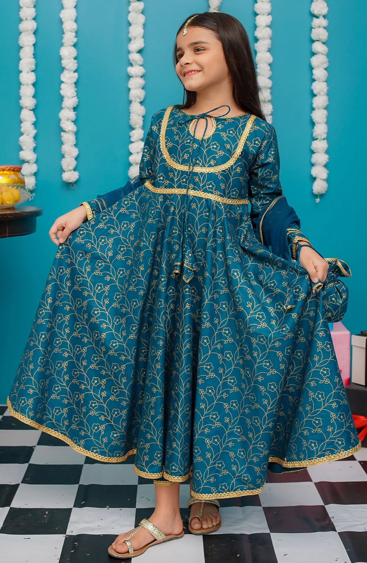 Modest Toddlers Cotton 3 Piece Frock - 9230 - MOD25EKK - Blue - Festive Collection