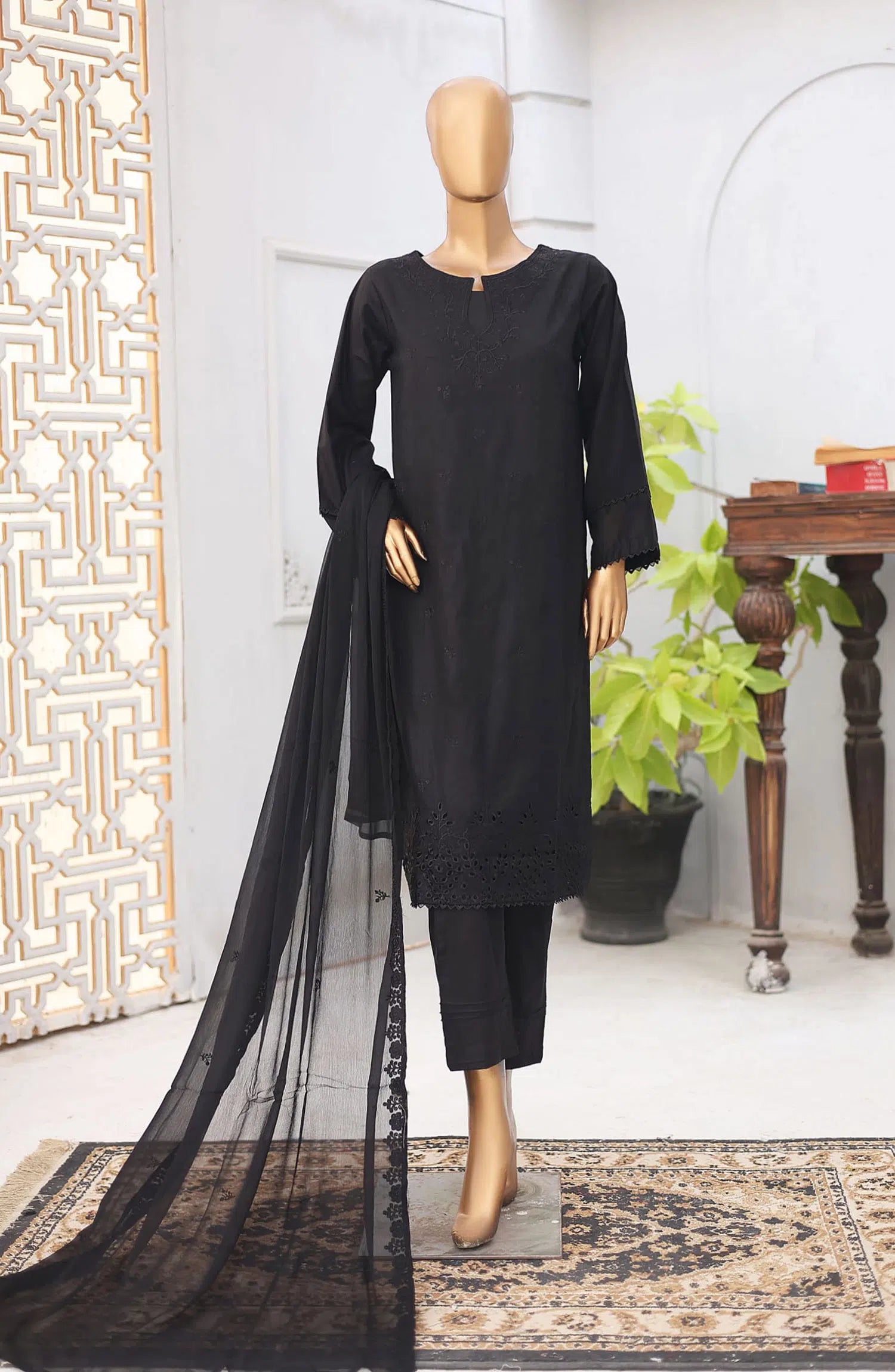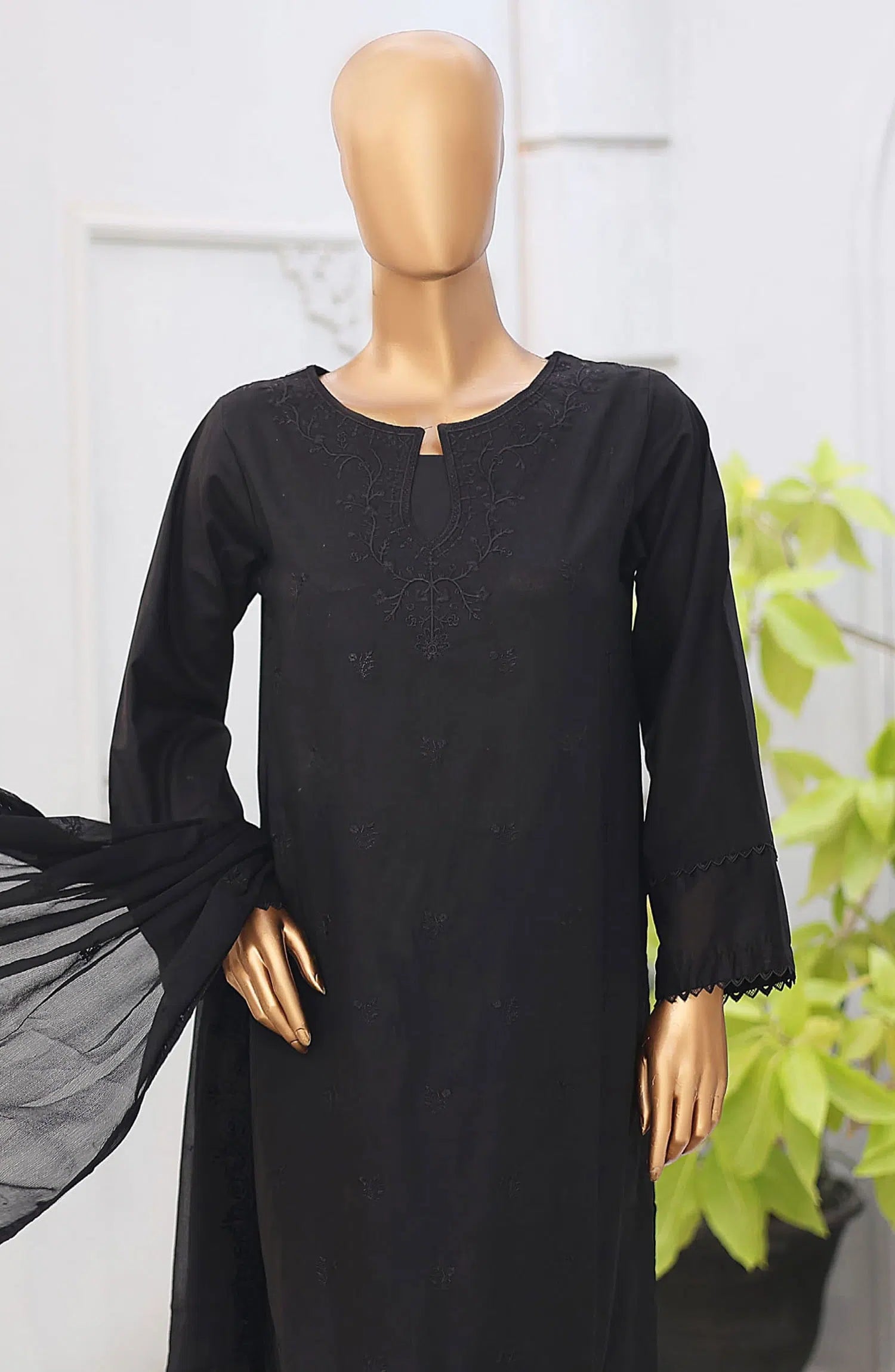 Modest Embroidered Khaddar Stitched 3 Piece Suit - 9990-Blk - MOD25WNT - Black - Winter Collection