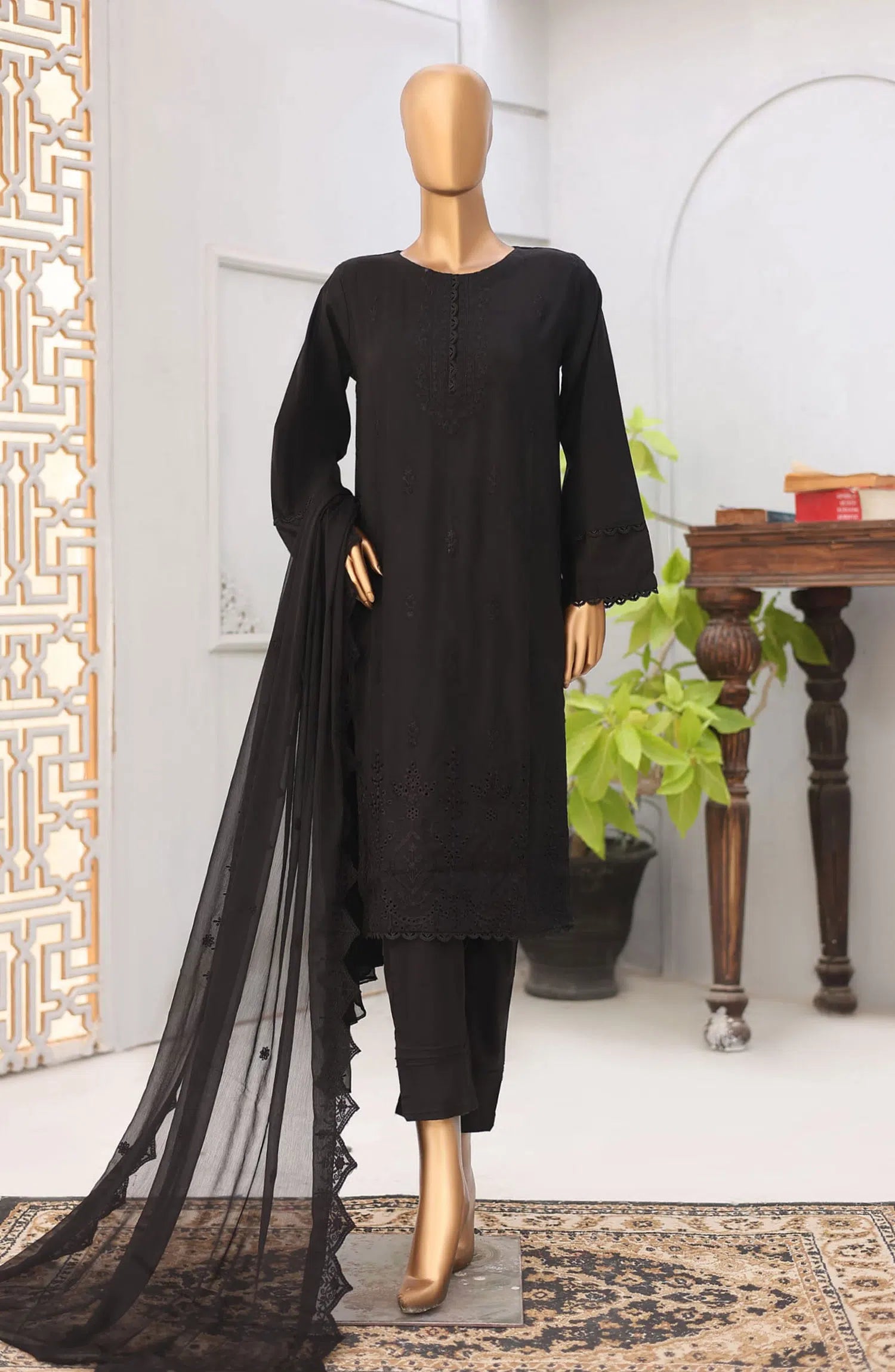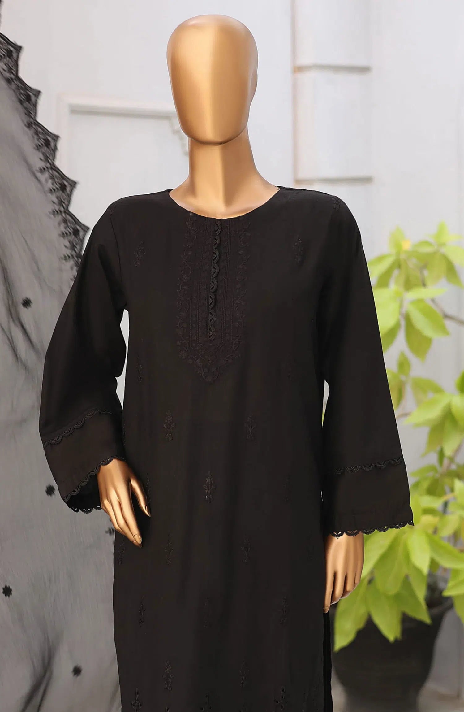 Modest Embroidered Khaddar Stitched 3 Piece Suit - 9990-Blk - MOD25WNT - Black - Winter Collection