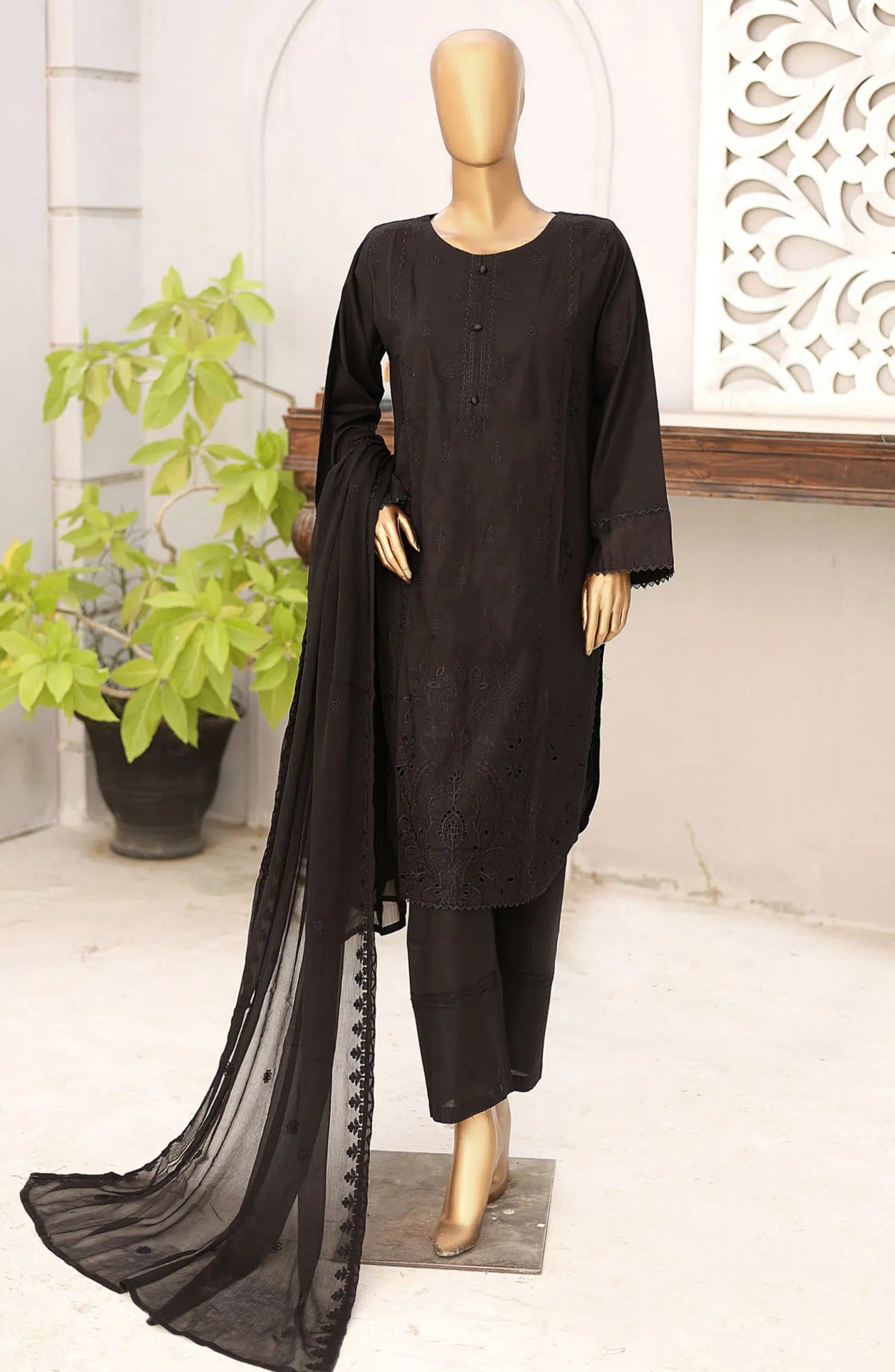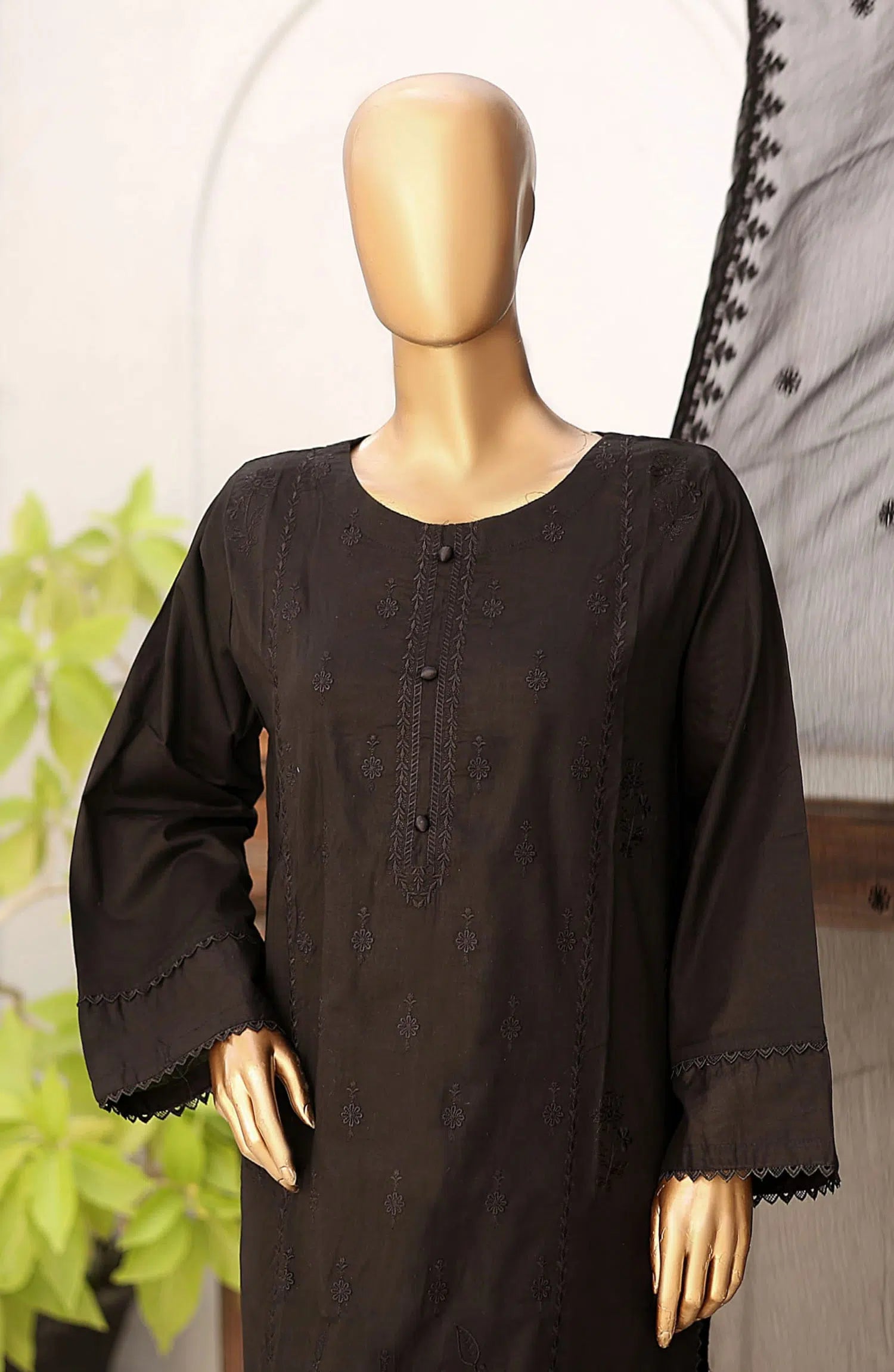 Modest Embroidered Khaddar Stitched 3 Piece Suit - 9990-Blk - MOD25WNT - Black - Winter Collection