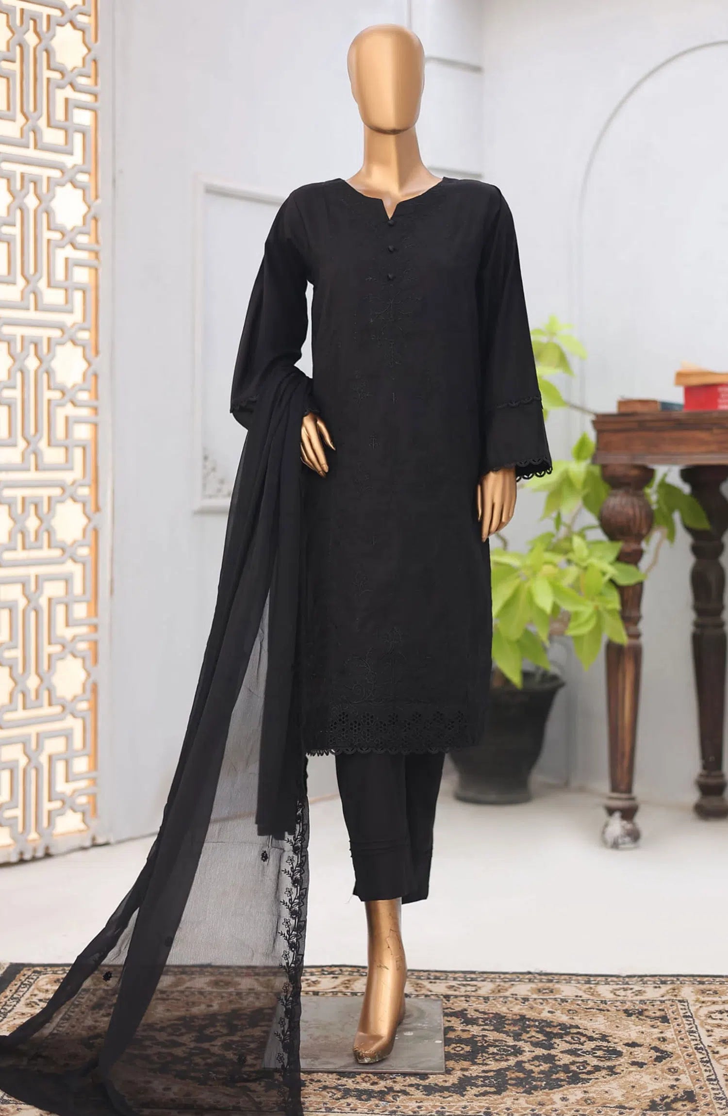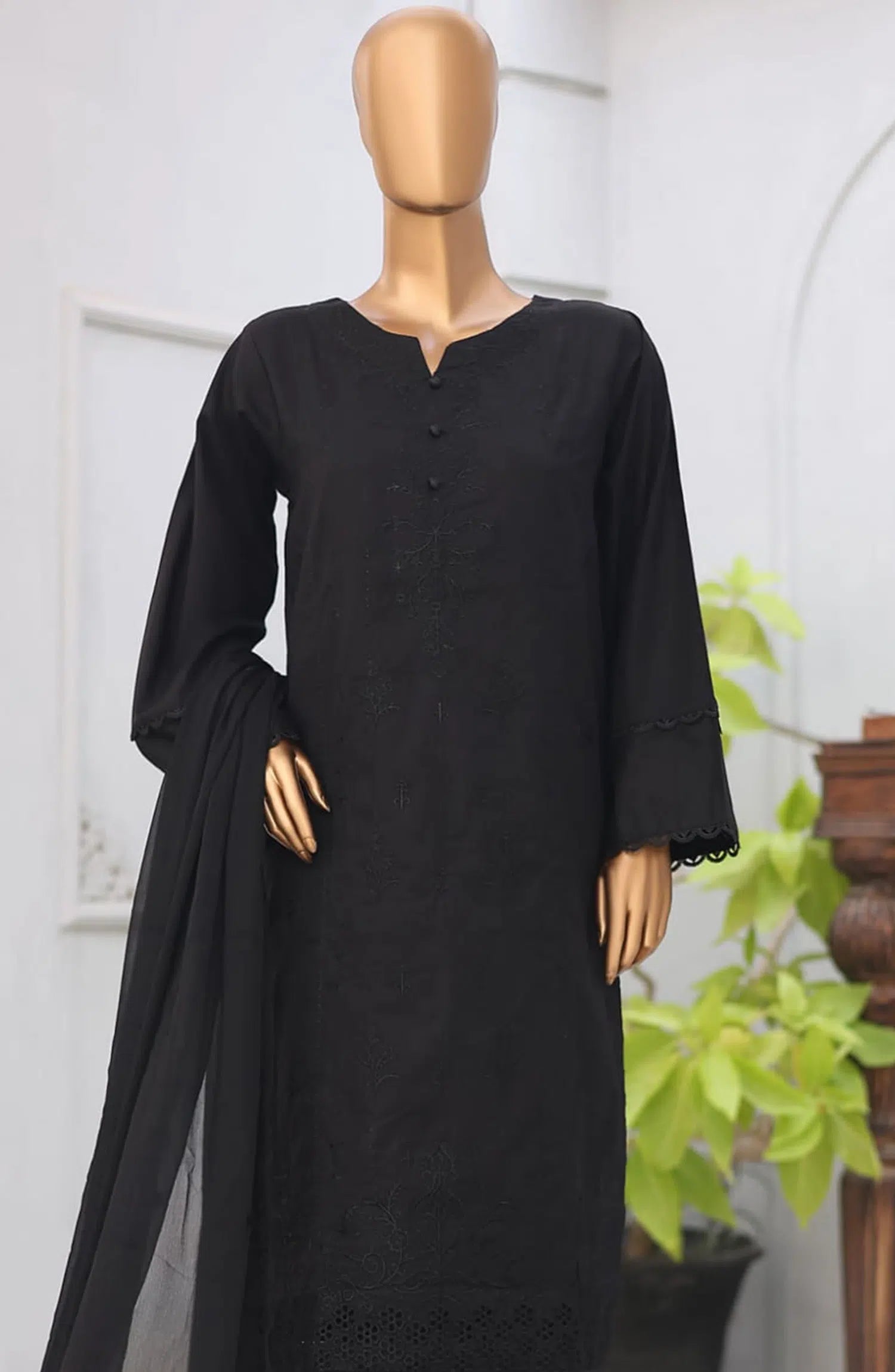 Modest Embroidered Khaddar Stitched 3 Piece Suit - 9990-Blk - MOD25WNT - Black - Winter Collection