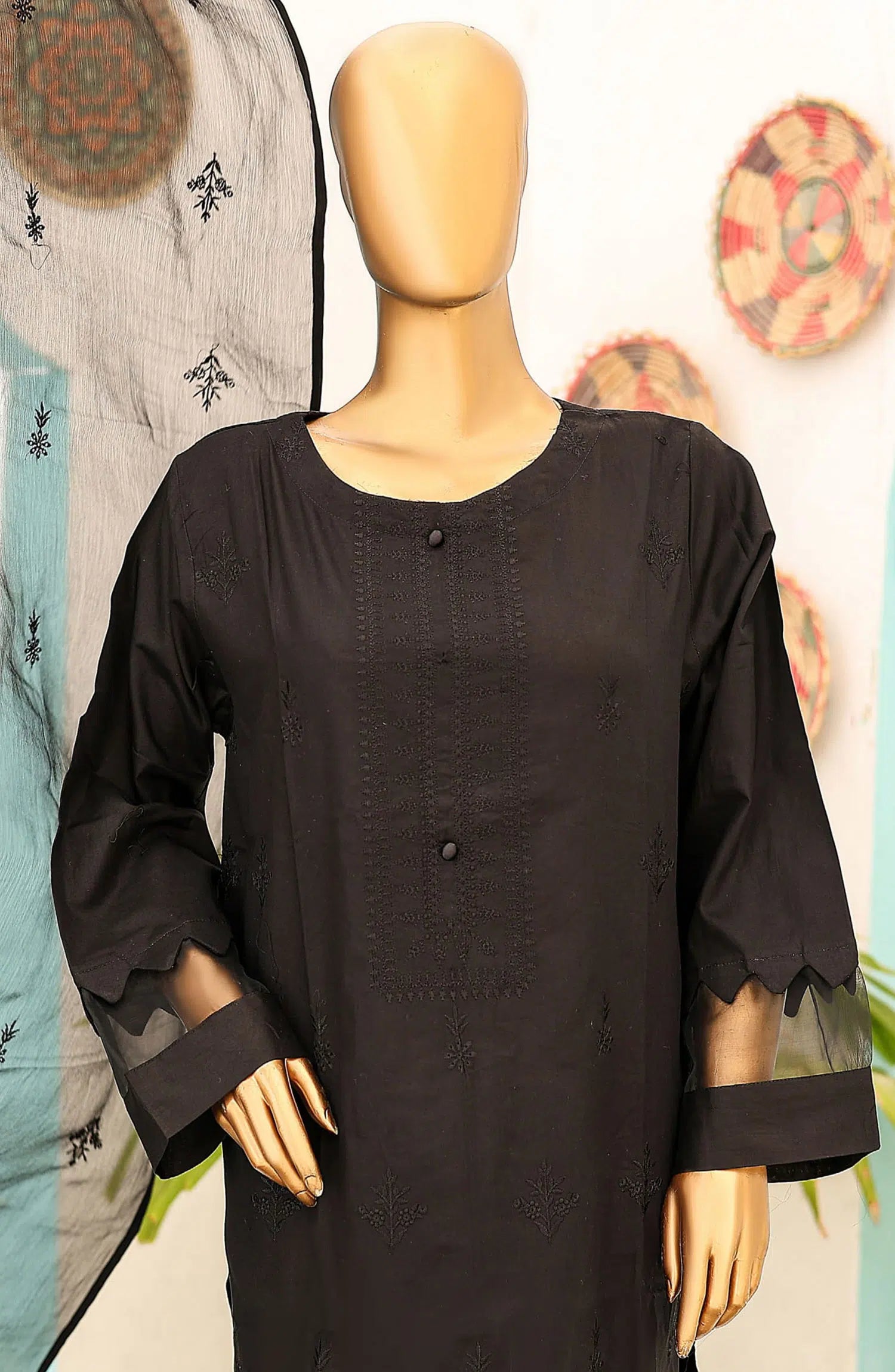 Rua by Casual Lite Embroidered Premium Linen Stitched 3 Piece Suit - D-03 Shadow Bloom - CL25RU - Black - Winter Collection