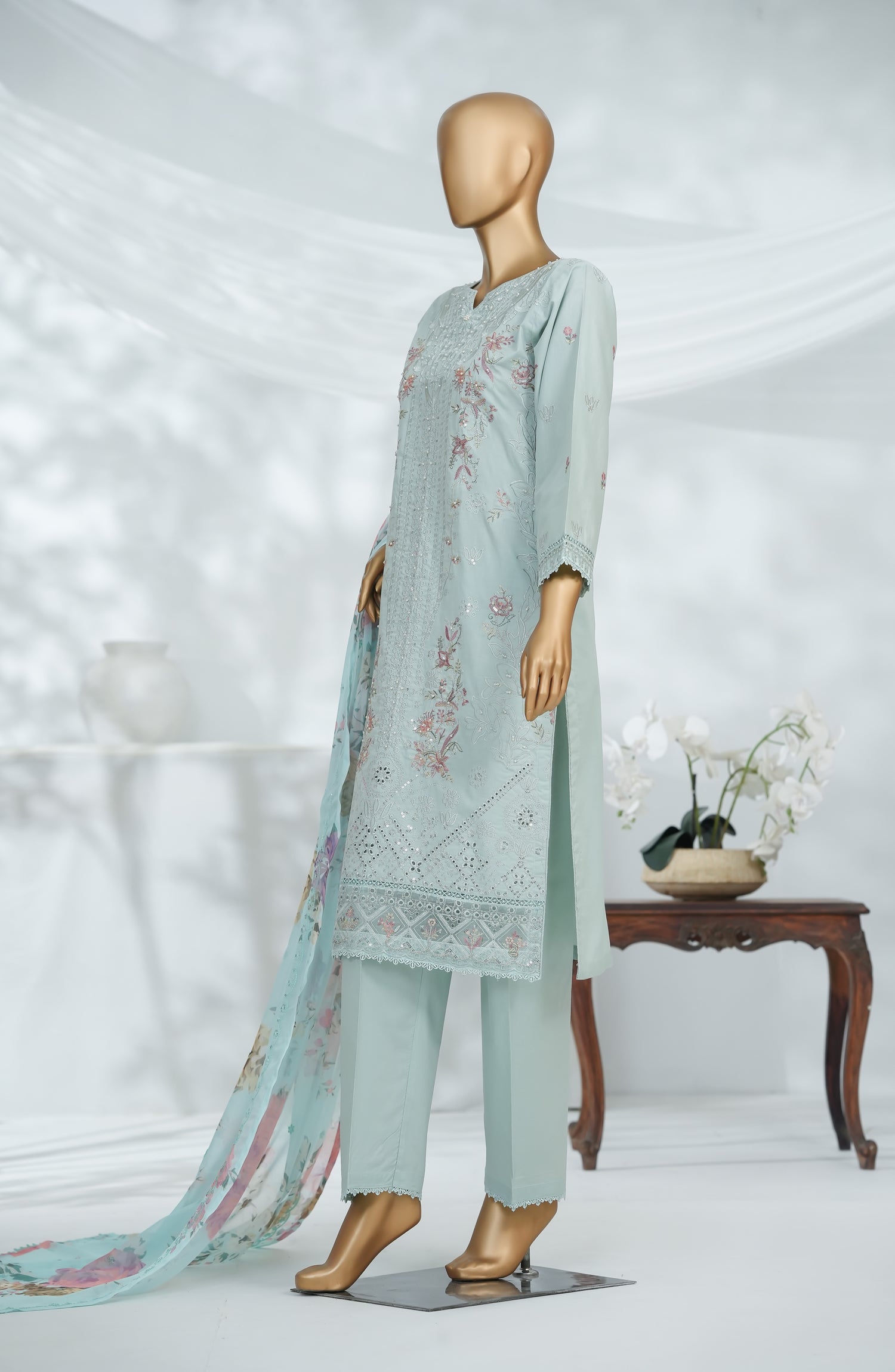 3 Pec Stitched Cotton Embroidered Shirt With Hand Embellishments