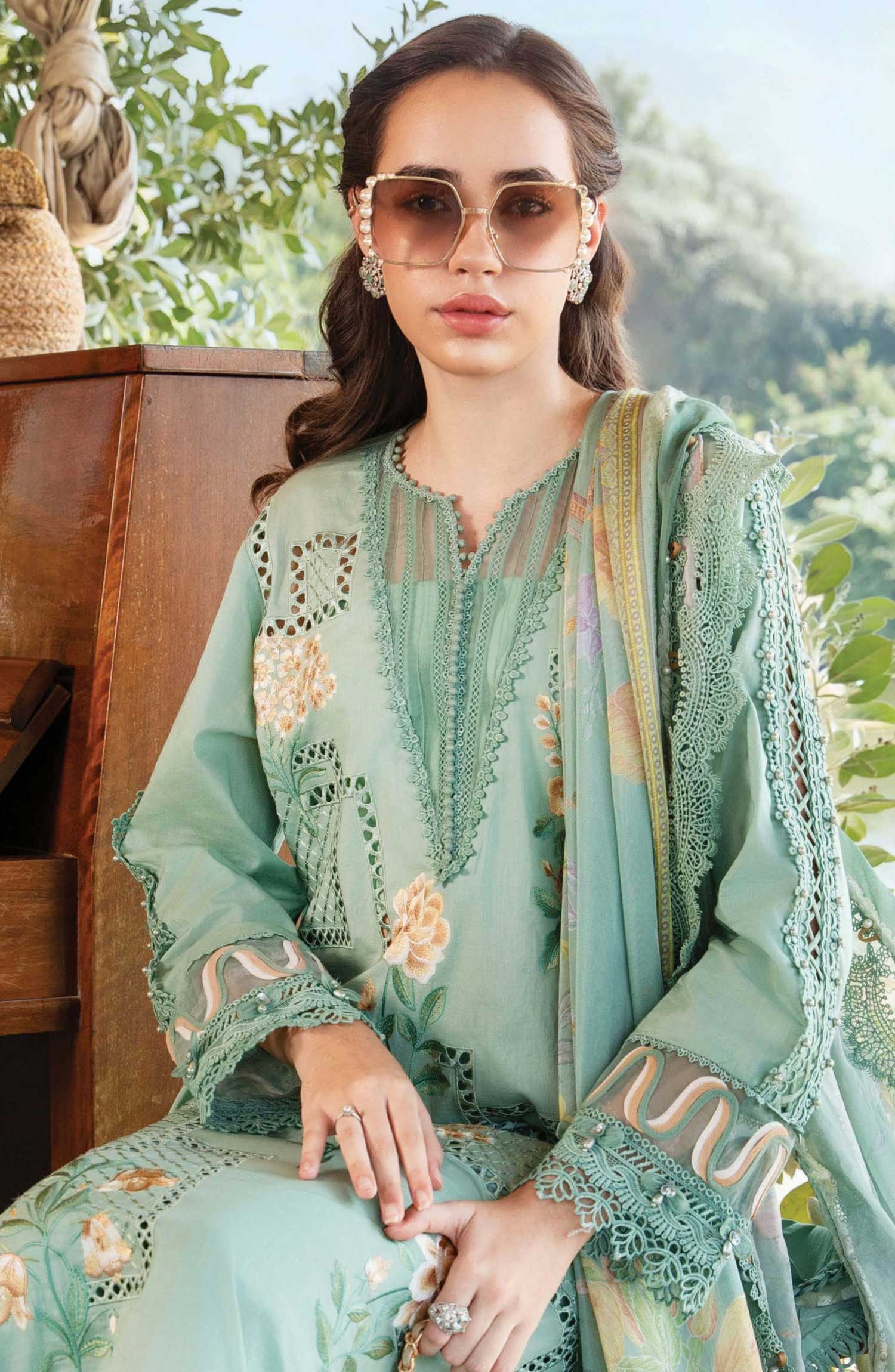 Mprints by Maria B Printed Unstitched 3 Piece Suit - D-01 b - MAB25PSS - Sea Green - Summer Collection