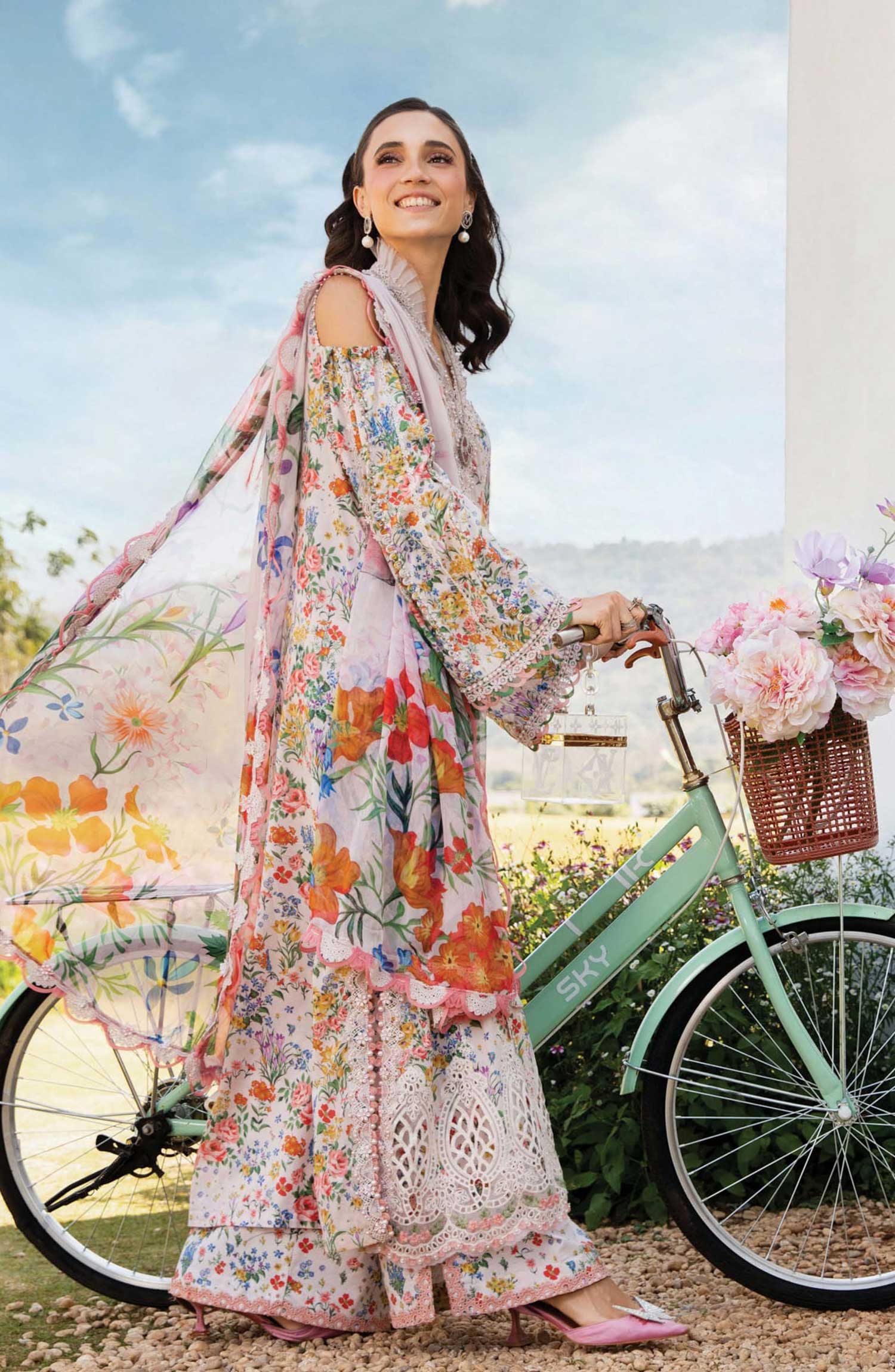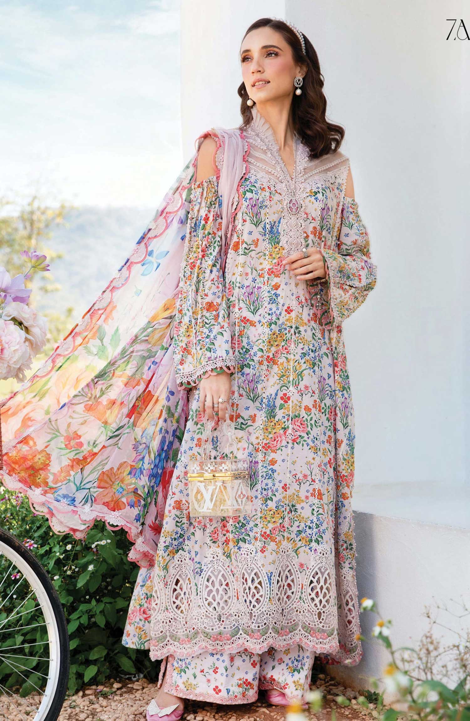 Mprints by Maria B Printed Unstitched 3 Piece Suit - D-07 A - MAB25PSS - White - Summer Collection