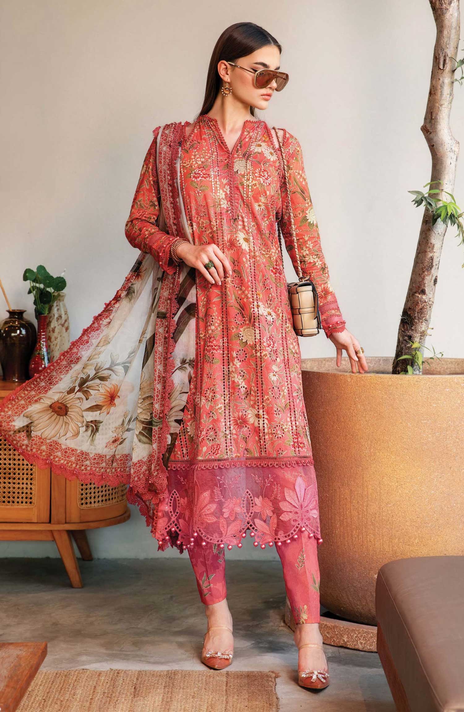 Mprints by Maria B Printed Unstitched 3 Piece Suit - D-08 A - MAB25PSS - Orange - Summer Collection