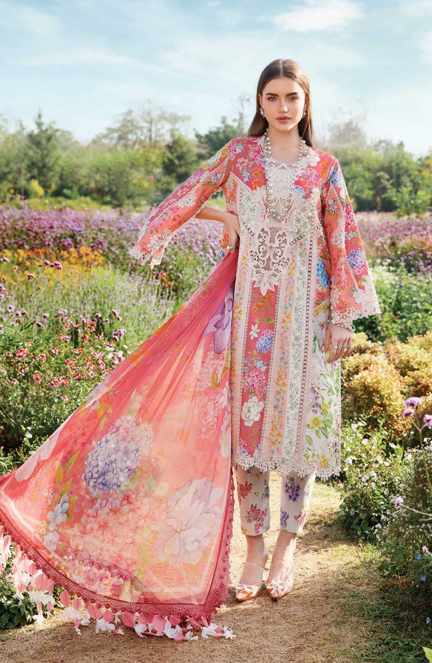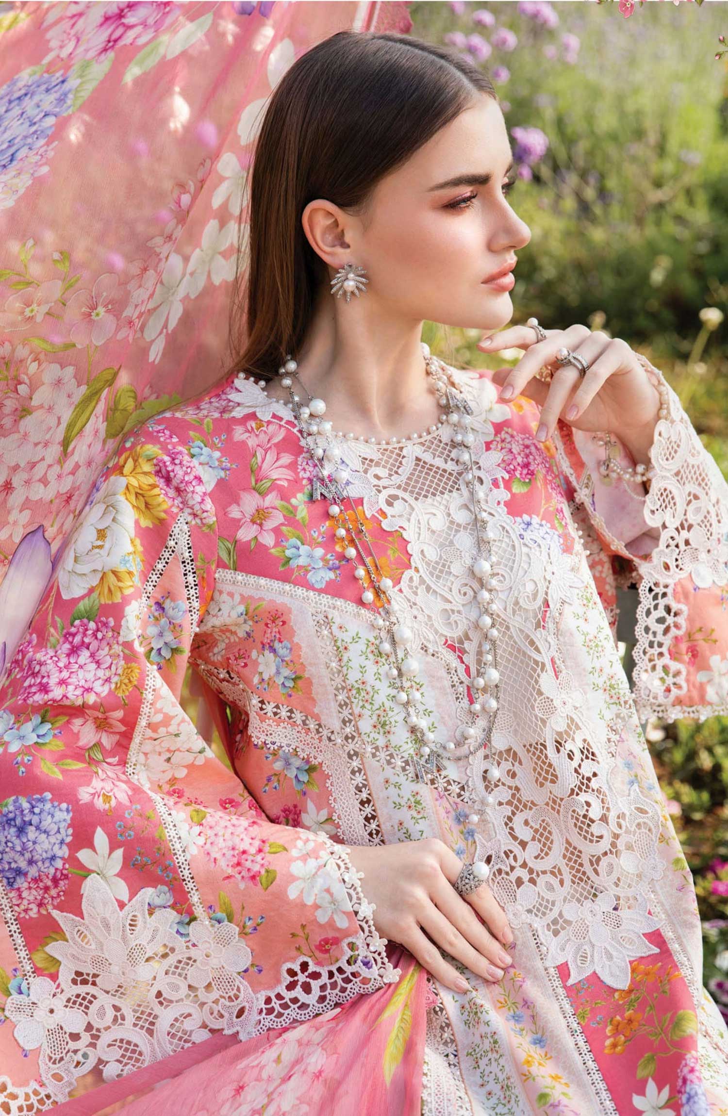 Mprints by Maria B Printed Unstitched 3 Piece Suit - D-09 B - MAB25PSS - Light Pink - Summer Collection